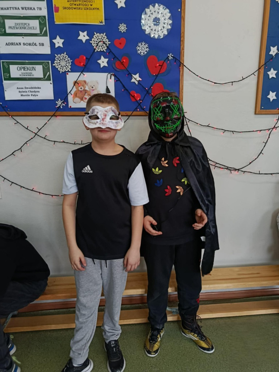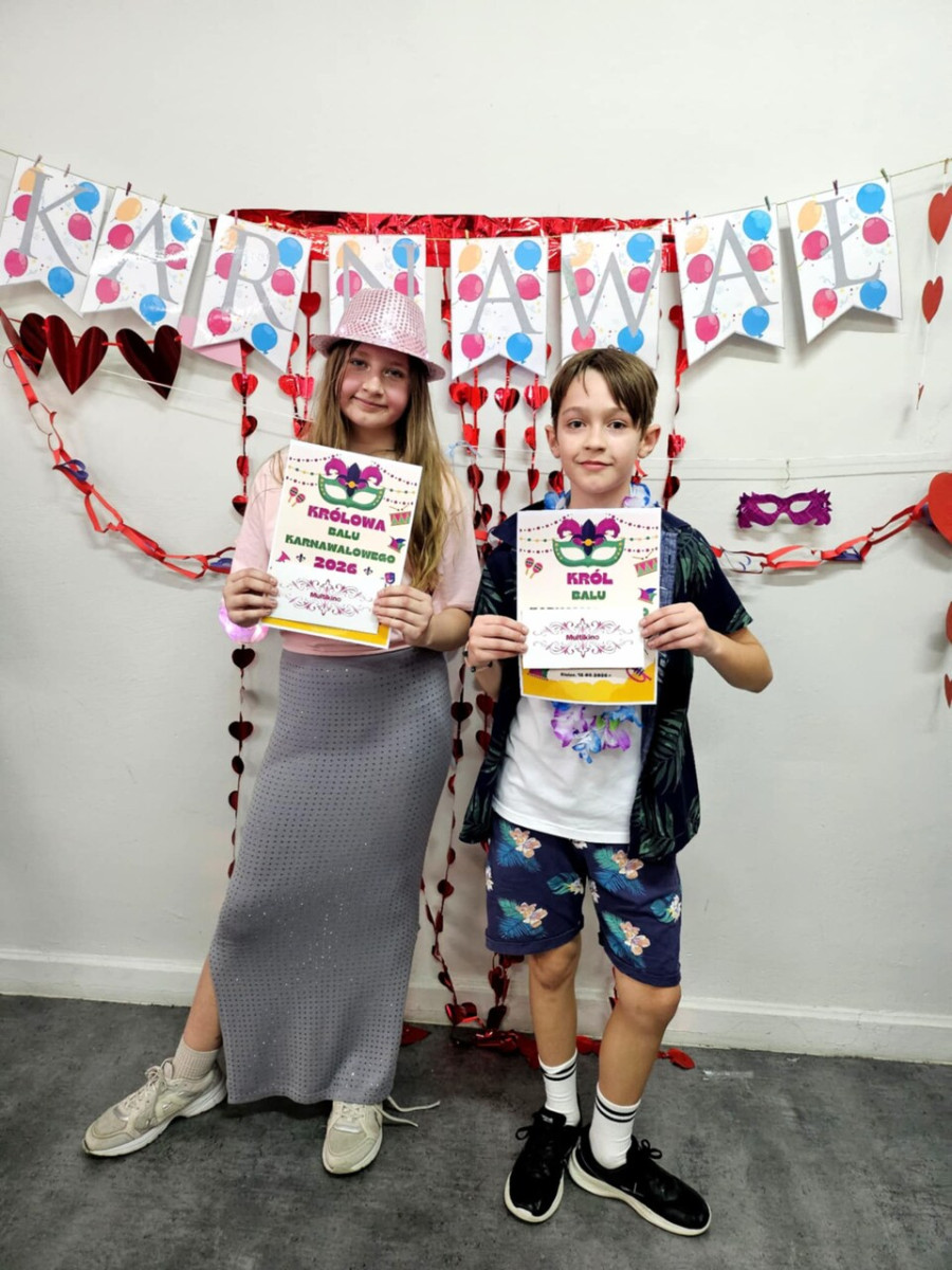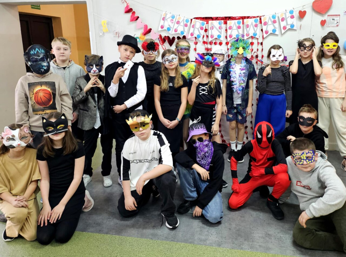 12 lutego 2026 r. Samorząd Uczniowski we współpracy z panią Agnieszką Król zorganizował wyjątkowy bal maskowy dla uczniów klas IV–V. Podczas wydarzenia wybrano Króla i Królową Balu. Jury kierowało się pomysłowością stroju i maski oraz zaangażowaniem w zabawę. Po długich naradach tytuł Królowej Balu zdobyła Hanna Biskupska z klasy 5B, natomiast Królem Balu został Michał Bochnak z klasy 4A. Zwycięzcy otrzymali dyplomy oraz karty upominkowe do kina Multikino (ważne przez rok). Nagrody zostały ufundowane ze środków zebranych podczas kiermaszu świątecznego – dziękujemy wszystkim, którzy przyczynili się do ich organizacji! Całemu wydarzeniu towarzyszył wspaniały humor, taneczne rytmy i największe muzyczne hity.
