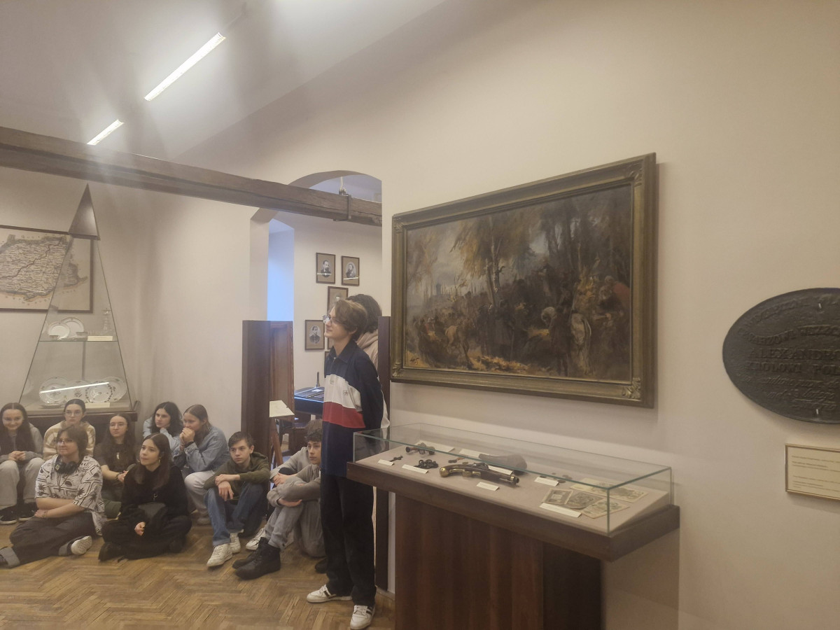 Po trzech dniach egzaminów próbnych, w ramach odpoczynku oraz świętowania Dnia Kobiet klasa 8A wybrała się na wycieczkę po Kielcach. Na początek wzięli udział w ciekawej lekcji w Muzeum Lat Szkolnych Stefana Żeromskiego. Poznali tam szkołę, do której kiedyś uczęszczał sam pisarz, poznali jej realia, a nawet mieli możliwość zobaczyć szkolne świadectwo naszego narodowego wieszcza! Tematyka spotkania była mocno powiązana z lekturą "Syzyfowe prace", więc łącząc przyjemne z pożytecznym uczniowie odświeżyli sobie przed majowym egzaminem zagadnienia z tej lektury.