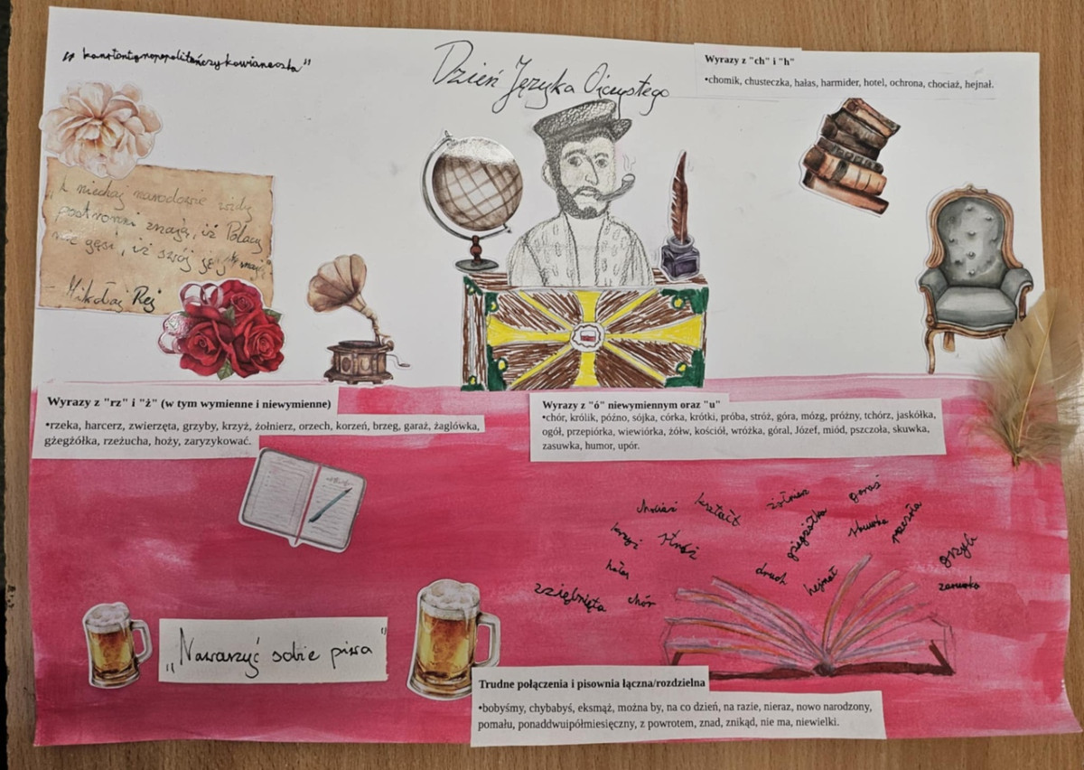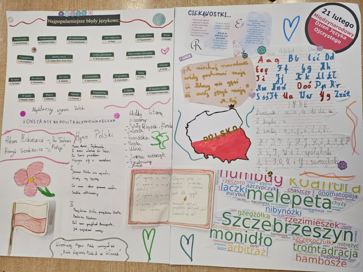 Powstały także piękne, tematyczne plakaty promujące poprawną polszczyznę oraz gazetka ścienna, która podkreśla piękno naszego języka. Uczniowie udowodnili, że „Polacy nie gęsi, iż swój język mają” i naprawdę dbają o poprawność oraz kulturę wypowiedzi.