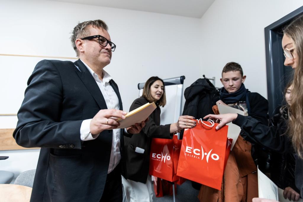 Kolejnym działaniem był rajd branżowy po lokalnych firmach i instytucjach, który umożliwił uczniom poznanie realnego środowiska pracy. W jego trakcie uczniowie odwiedzili m.in. warsztat mechaniczny Mercedes, Galerię Echo oraz bank. Uczniowie mieli okazję zapoznać się z organizacją pracy w różnych branżach, poznać zakres obowiązków pracowników oraz wymagania kwalifikacyjne. Bezpośredni kontakt z pracodawcami pozwolił uczniom lepiej zrozumieć funkcjonowanie rynku pracy oraz znaczenie kompetencji zawodowych i społecznych.