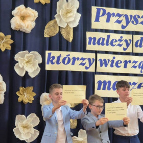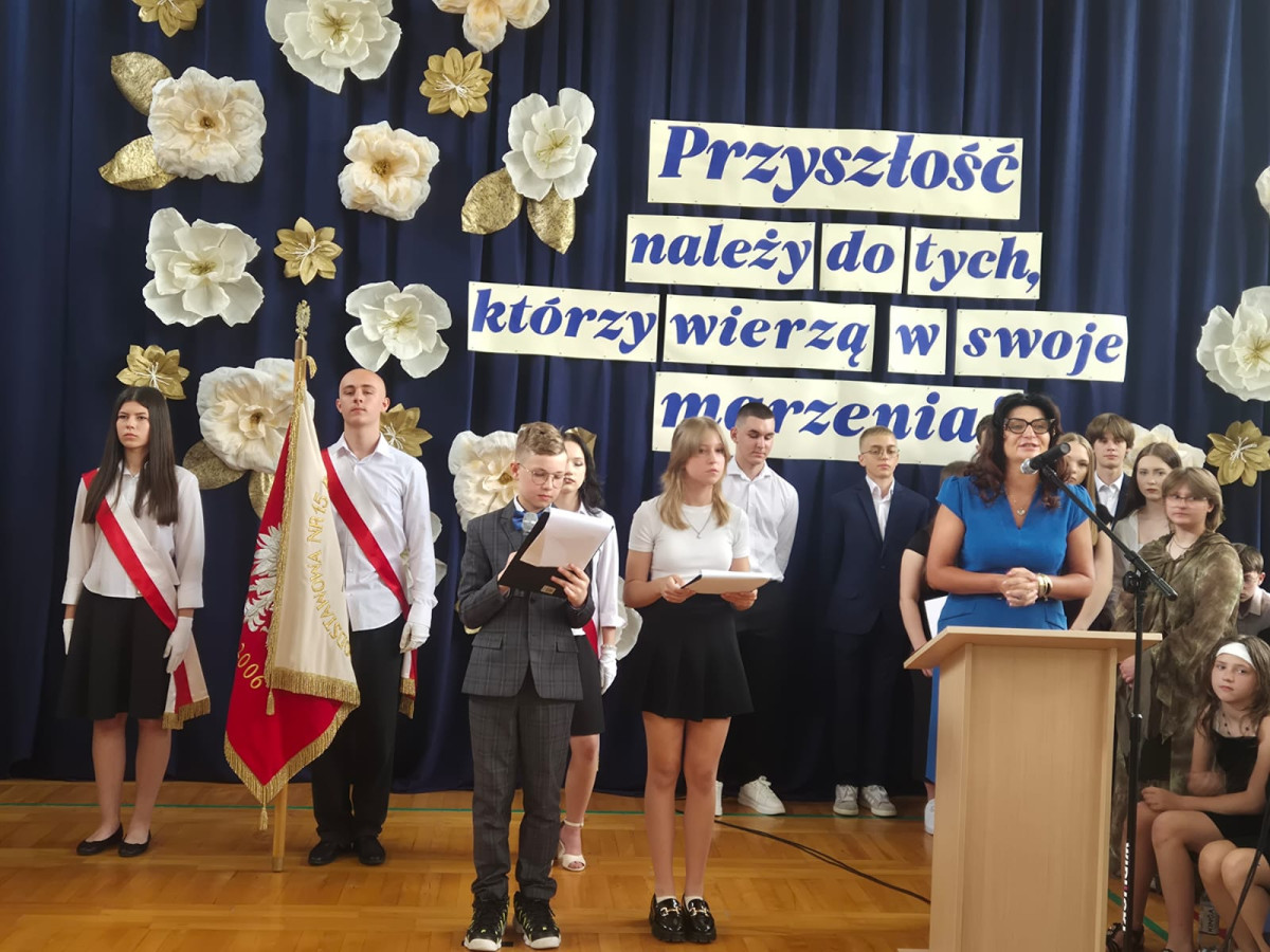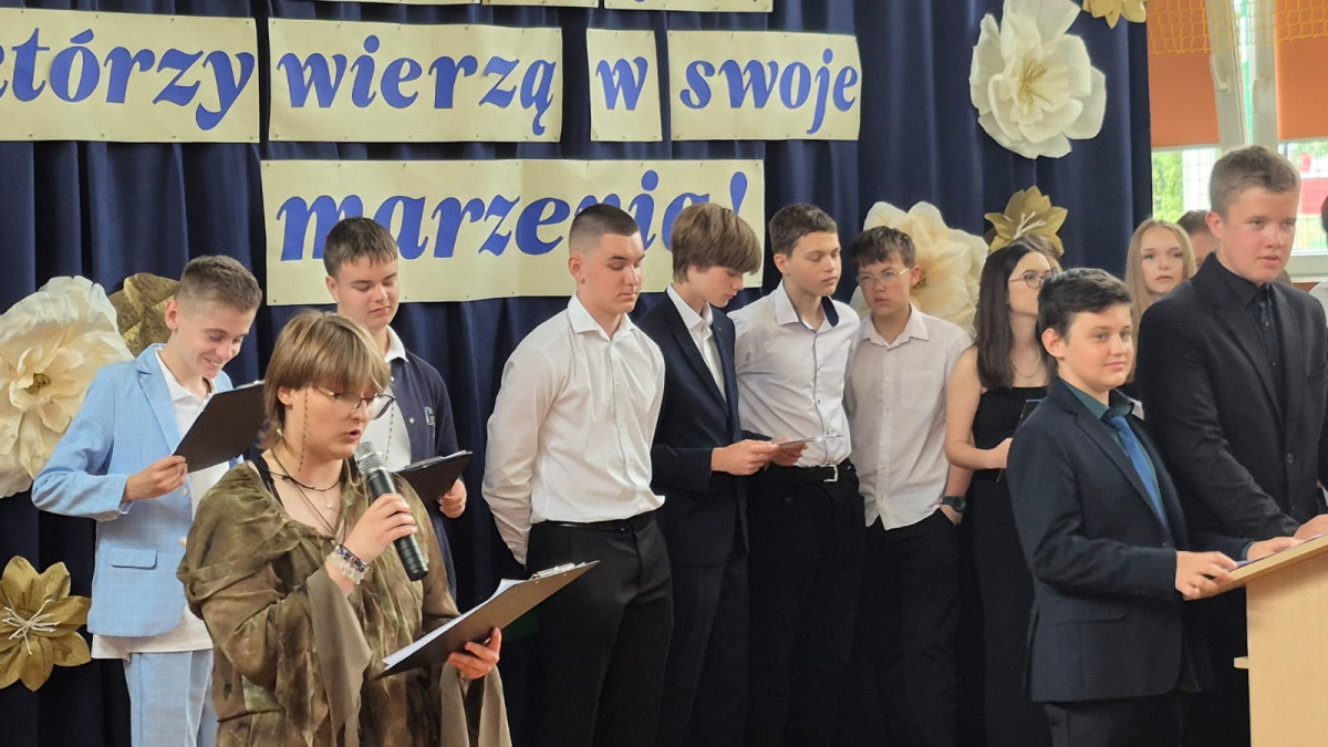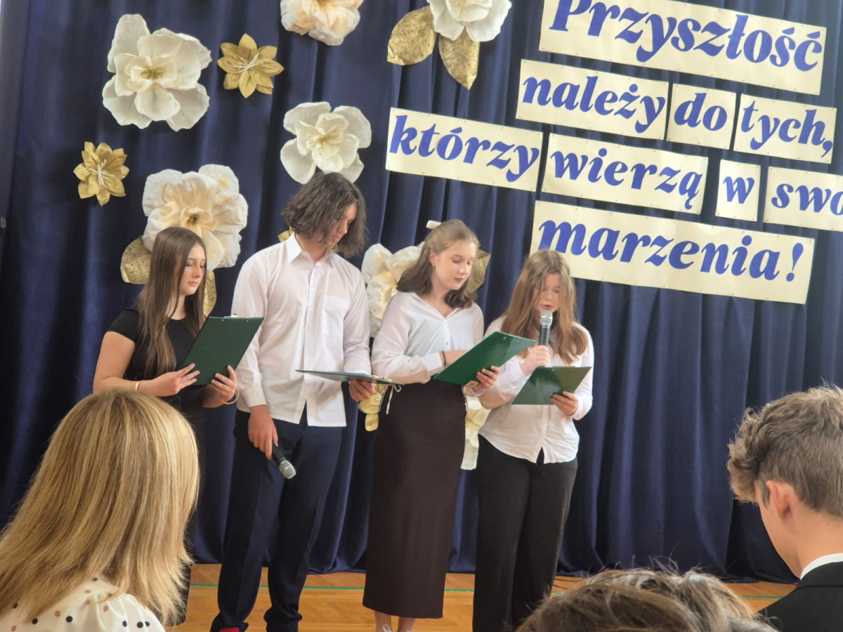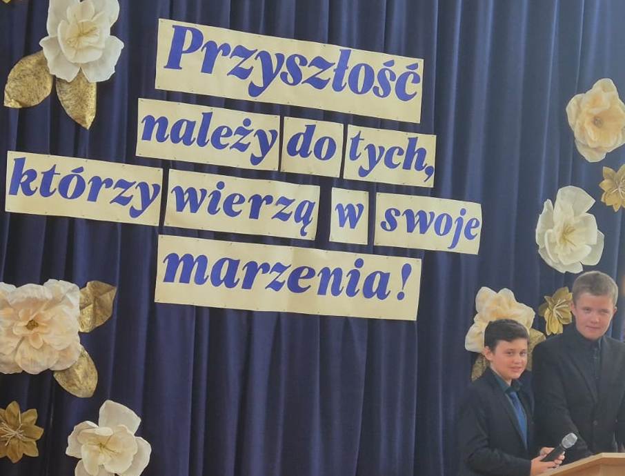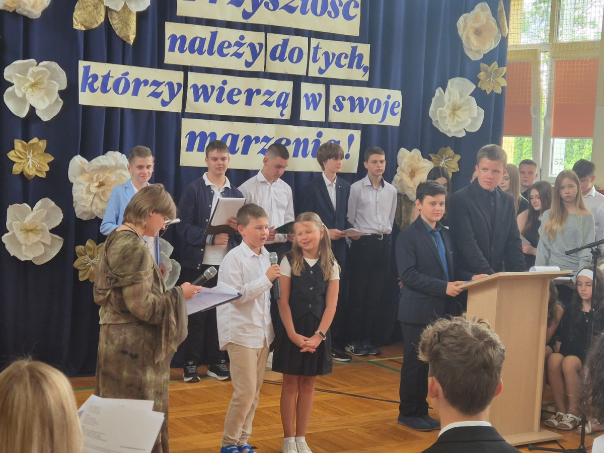 Życzymy Wam, drodzy ABSOLWENCI, wielu sukcesów w nowej szkole, realizacji marzeń i rozwijania talentów, ale przede wszystkich – tak jak powiedziała pani dyrektor Elżbieta Rasała w swoim przemówieniu – żebyście wyrośli na szlachetnych i szczęśliwych ludzi.