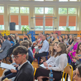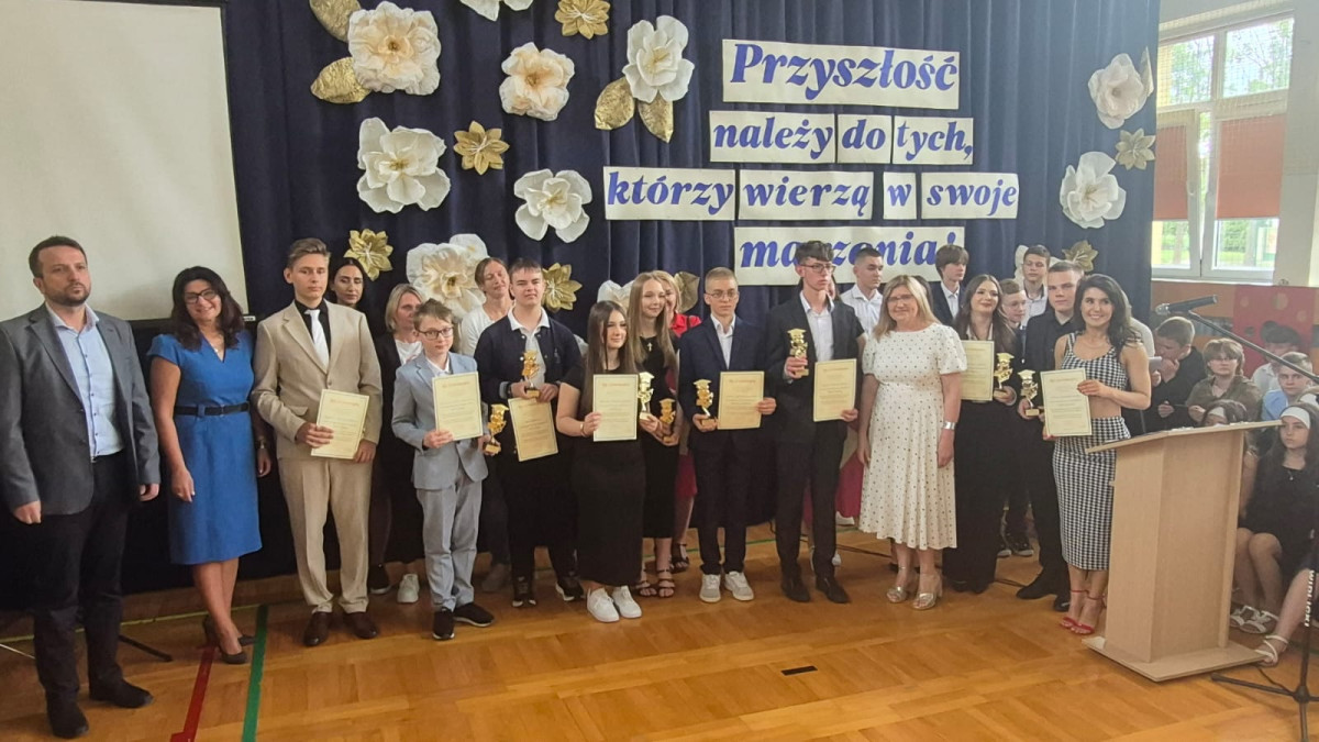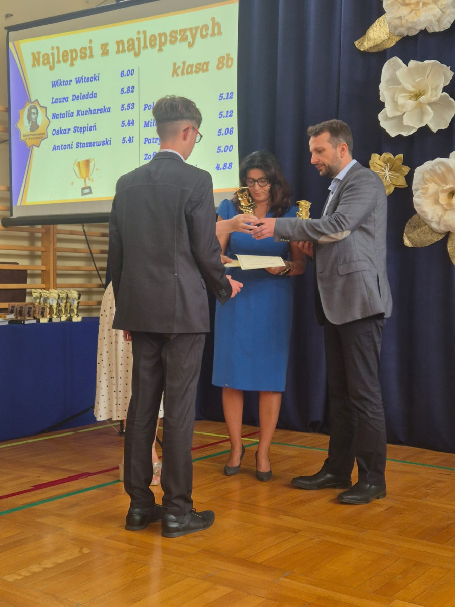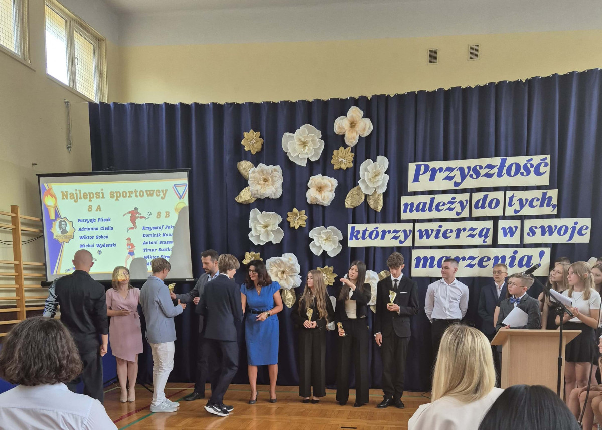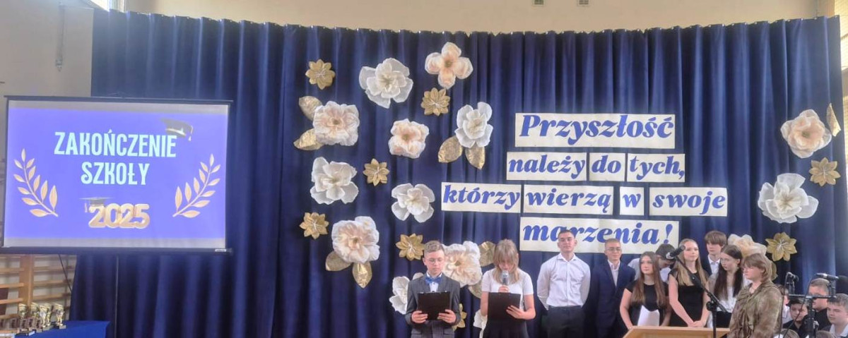 25 czerwca 2025 r. odbyła się uroczystość pożegnania uczniów klas ósmych, którzy ukończyli szkołę podstawową. W części oficjalnej uroczystości pani dyrektor Elżbieta Rasała oraz przewodniczący Rady Rodziców, pan Maciej Kowalik wręczyli najlepszym uczniom złote statuetki. Gratulacje dla wyróżnionych!