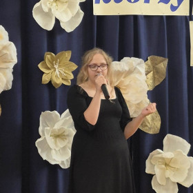 Ogromne podziękowania składamy pani Agnieszce Król za przygotowanie oprawy muzycznej przedstawienia, w tym naszego szkolnego chóru, którego członkinie wykonały piosenki solo i razem aż w trzech językach.