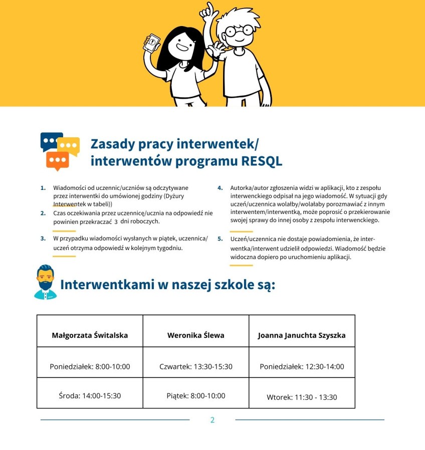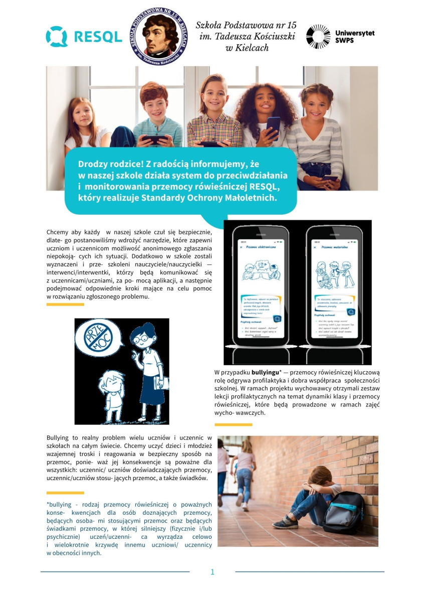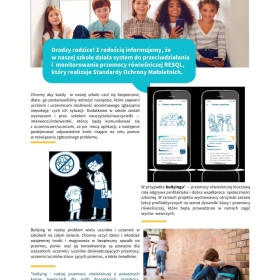 Informujemy, że od 1 kwietnia 2026 roku w naszej szkole zostanie wdrożony system RESQL, którego celem jest wspieranie szkół w reagowaniu na problemy przemocy rówieśniczej oraz trudności w relacjach między uczniami.