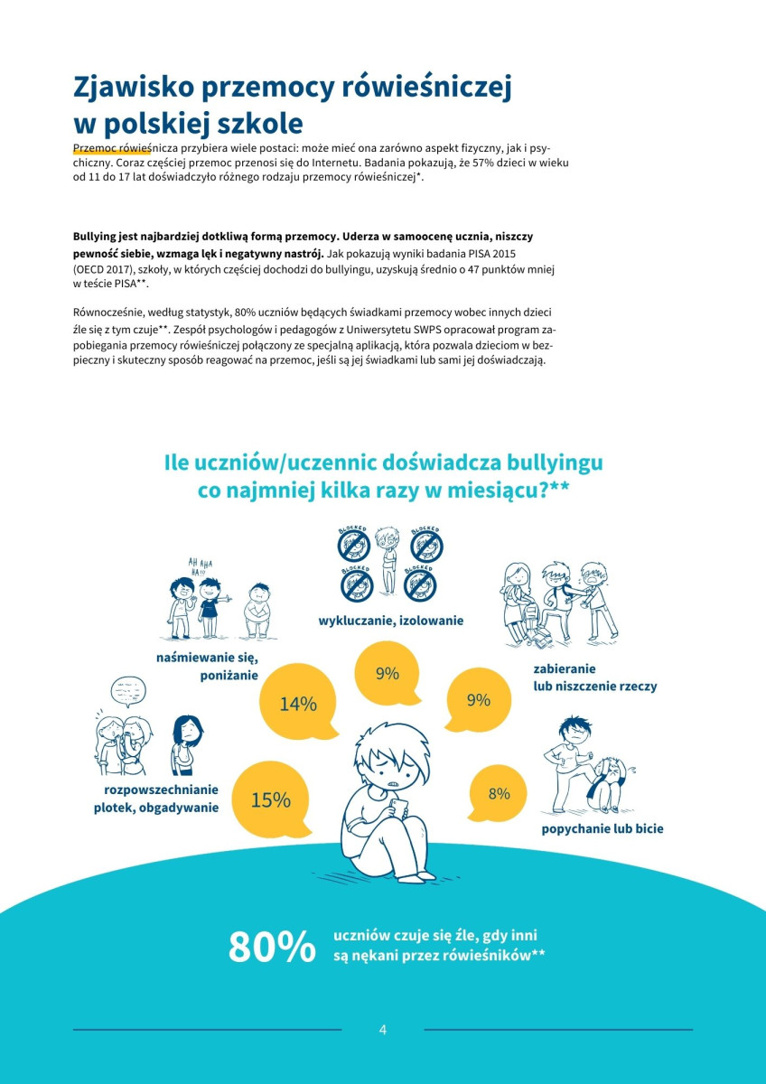 System przeznaczony jest dla uczniów klas IV–VIII i umożliwia zgłaszanie sytuacji związanych z przemocą rówieśniczą lub trudnościami w relacjach między uczniami.