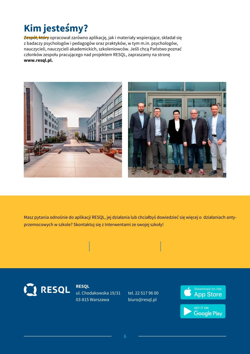 RESQL jest innowacyjnym rozwiązaniem opracowanym we współpracy z członkami społeczności szkolnej – uczniami, nauczycielami, dyrektorami oraz rodzicami. System powstał w oparciu o badania naukowców z Uniwersytetu SWPS, warsztaty z nauczycielami i uczniami oraz pilotażowe wdrożenie programu w szkołach.