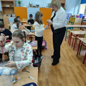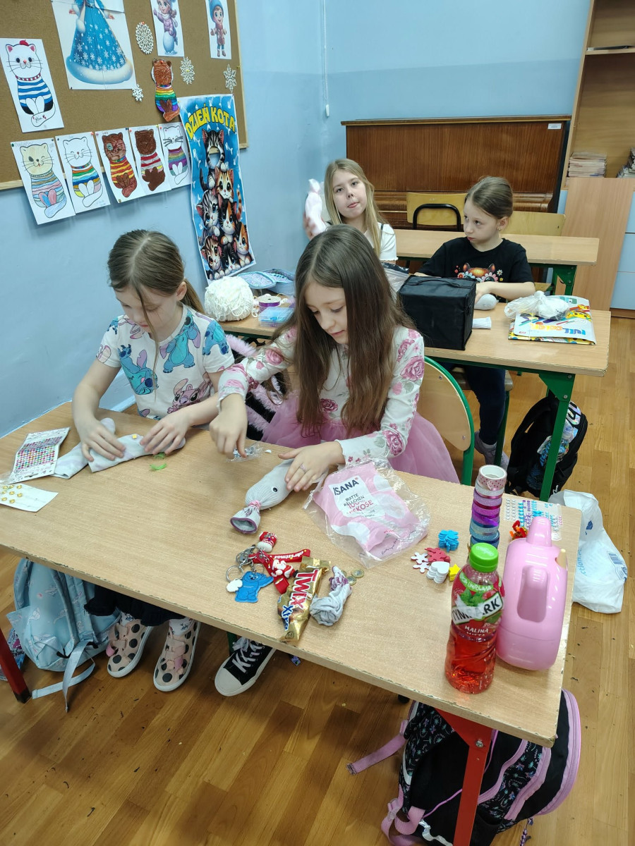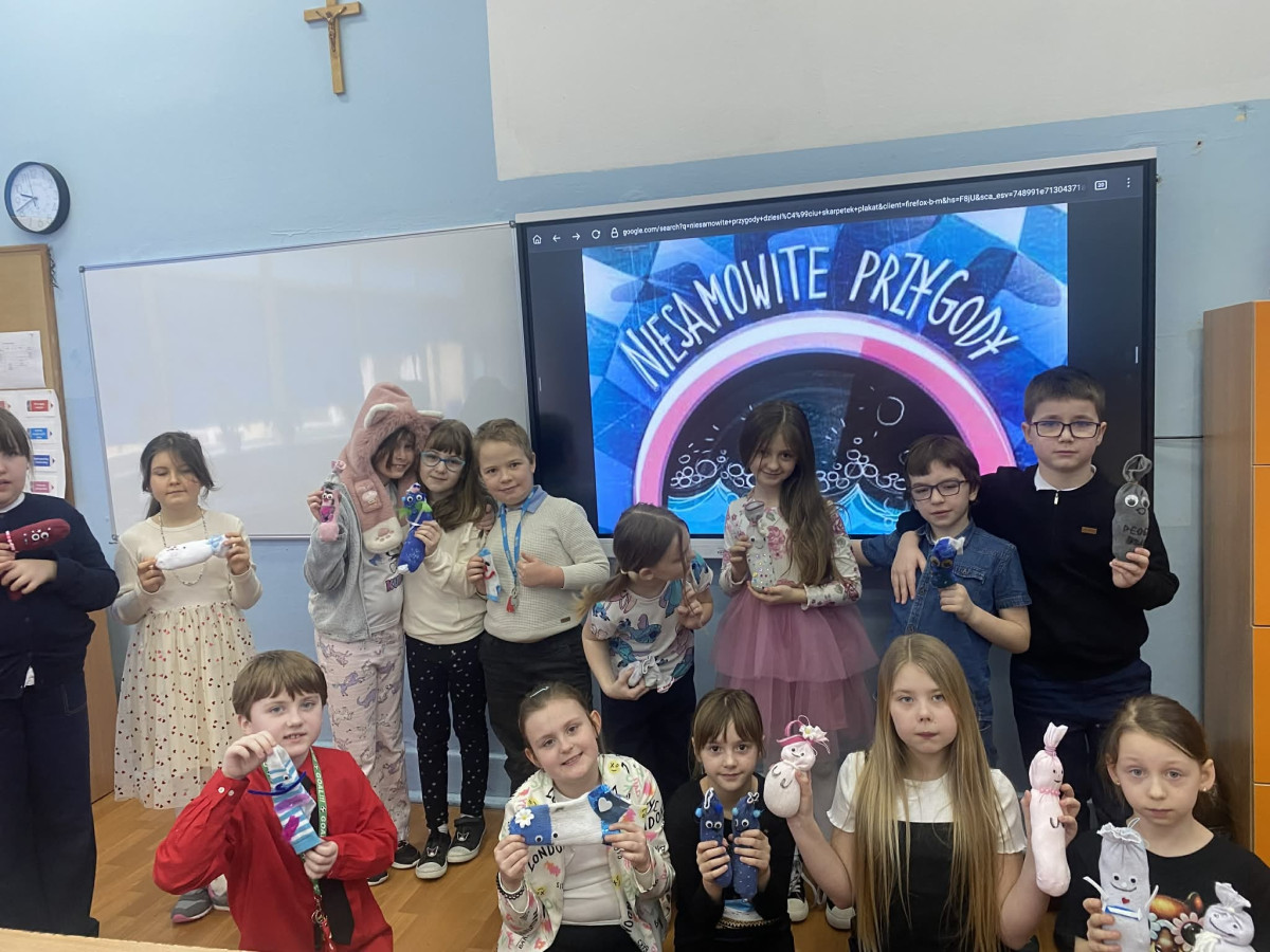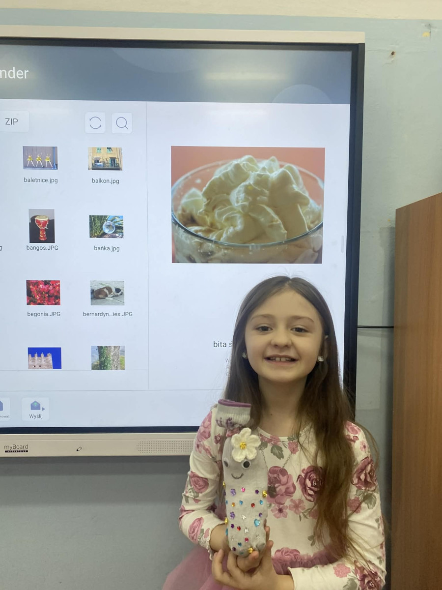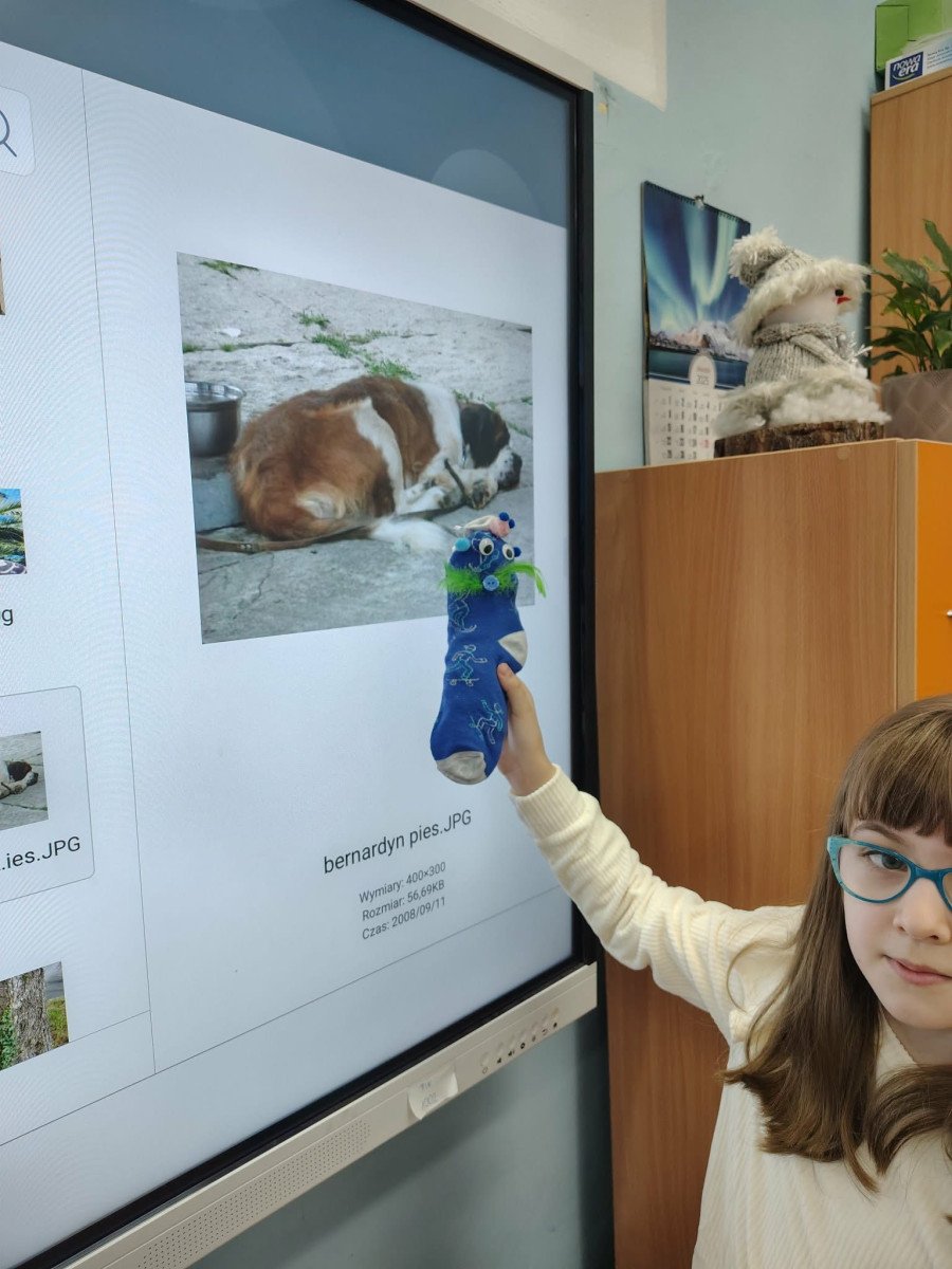 Dużo radości przyniosło również wymyślanie historii „swoich skarpetek”. Zajęcia zostały poprzedzone działaniami plastycznymi – uczniowie ubierali skarpetki, nadając im indywidualny charakter i wygląd. Następnie tworzyli opowieści o swoich bohaterach, rozwijając wyobraźnię oraz umiejętność twórczego opowiadania.