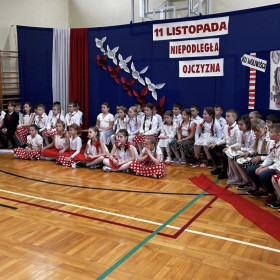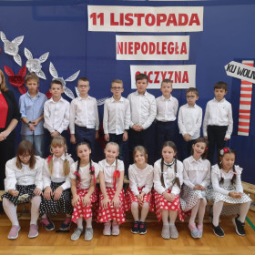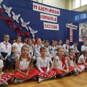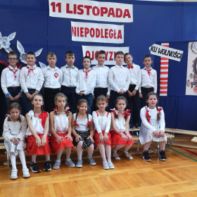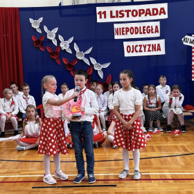 Akademię wzbogacił walc Gabrysi i Michała z klasy 3a oraz śląski taniec ludowy Trojak w wykonaniu dziewczynek i chłopców z klas trzecich. Zgromadzona społeczność szkolna z zaciekawieniem wysłuchała niezwykle wzruszającego programu. Ta lekcja historii utwierdziła nas w przekonaniu, iż ...wolność - to nie cel, lecz szansa by spełnić najpiękniejsze sny, marzenia... Wolność brzmi, jak radosny ludzi śmiech, którzy wolność swą zdobyli na obronę...