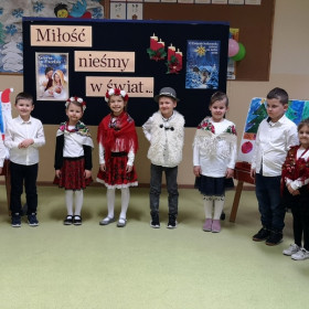 17 grudnia dzieci z oddziału przedszkolnego wystąpiły w Koncercie Bożonarodzeniowym dla uczniów z klas I-III. Kolędy, pastorałki oraz piosenki świąteczne wprowadziły słuchaczy w atmosferę zbilżających się świąt.