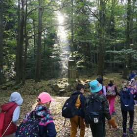 Klasy trzecie pożegnały powitały jesień w pięknych okolicznościach przyrody- pokonując kilometry, pieszo dotarły na Łysicę.