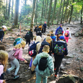 W bezchmurnej aurze każdego z nas zachwyciła przyroda Świętokrzyskiego Parku Narodowego. Najwyższy szczyt Gór Świętokrzyskich o wysokości 614 m n.p.m. - Łysica, choć momentami z trudniejszymi fragmentami szlaku, sprawiła, że na twarzach dzielnych uczniów pojawił się uśmiech.