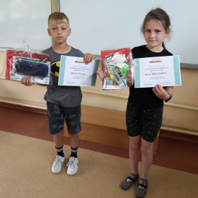 Reprezentanci klas drugich i trzecich wzięli udział w szkolnym konkursie ortograficznym. Uczniowie zmagali się z trudnościami występującymi w języku polskim, w celu ustalenia kto zostanie mistrzem ortografii na poszczególnych poziomach. Miło nam poinformować, że Mistrzynią Ortografii klas drugich została Anna Wolniarska z kl. 2a, a Mistrzem Ortografii klas trzecich został Michał Radek z kl. 3a. Mistrzowie mają też swoich zastępców, a są nimi Aleksandra Jankowska z kl. 2b oraz Hanna Biskupska z kl. 3b, dziewczynki otrzymały tytuł Vice Mistrzyni Ortografii.