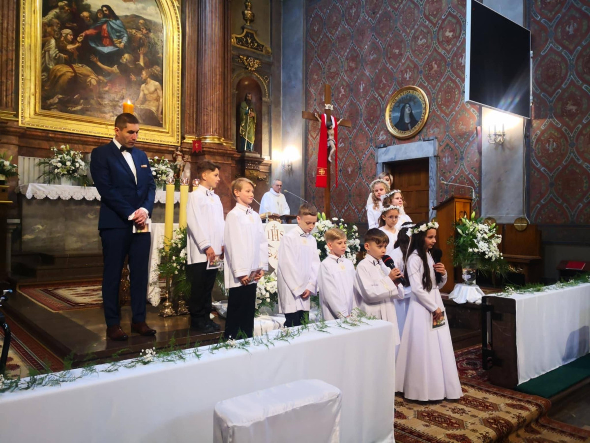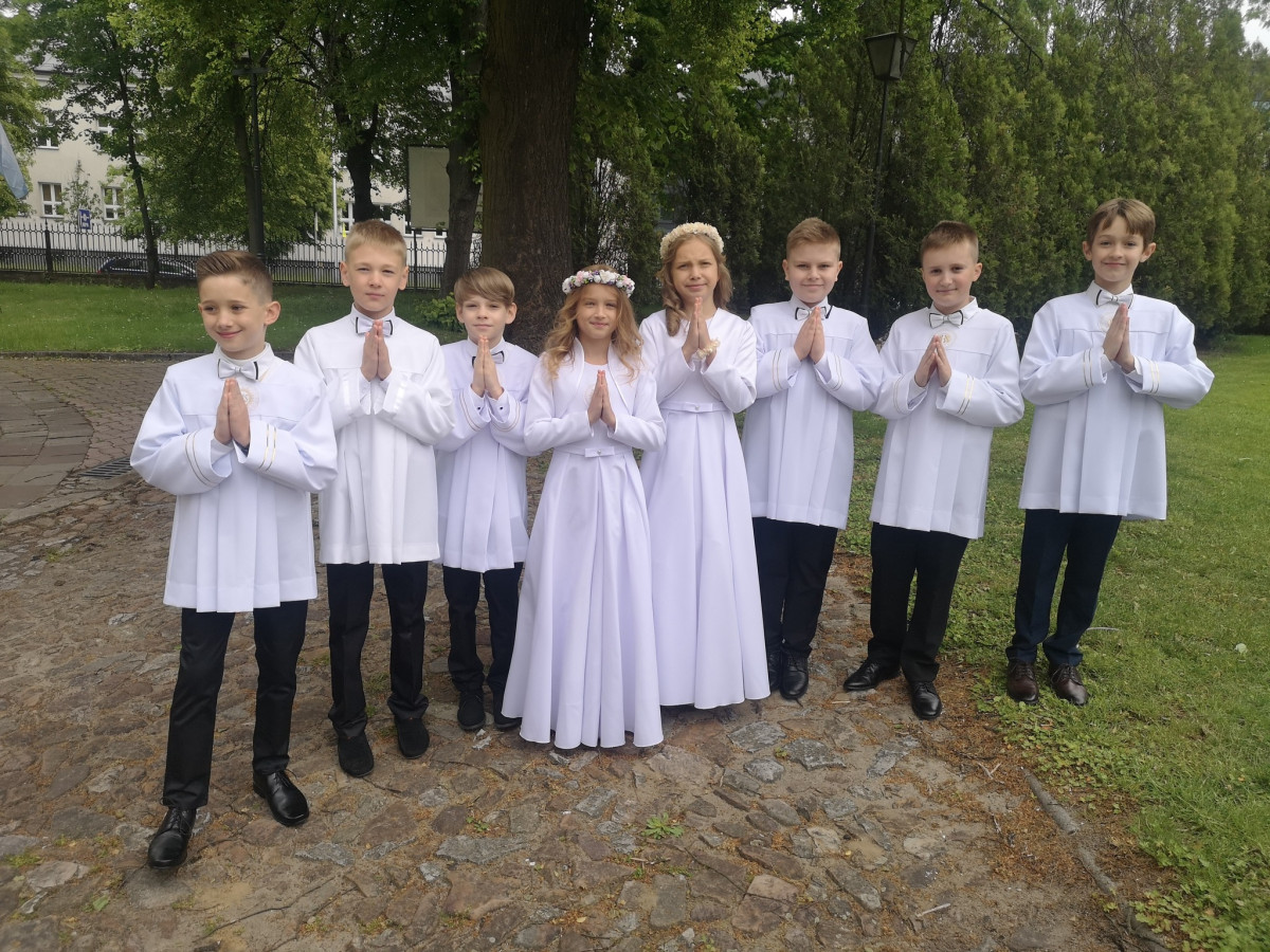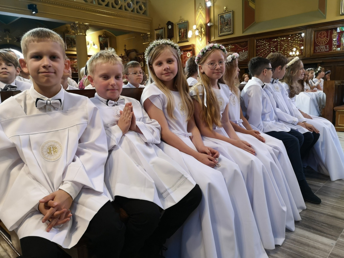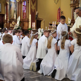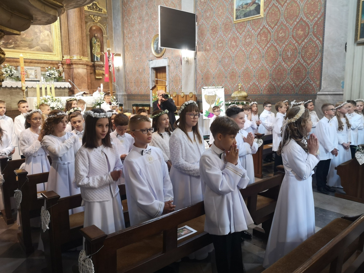 24 maja, uczniowie klas trzecich, w parafii pw. Świętego Wojciecha w Kielcach przystąpili do Pierwszej Komunii Świętej .