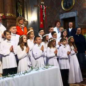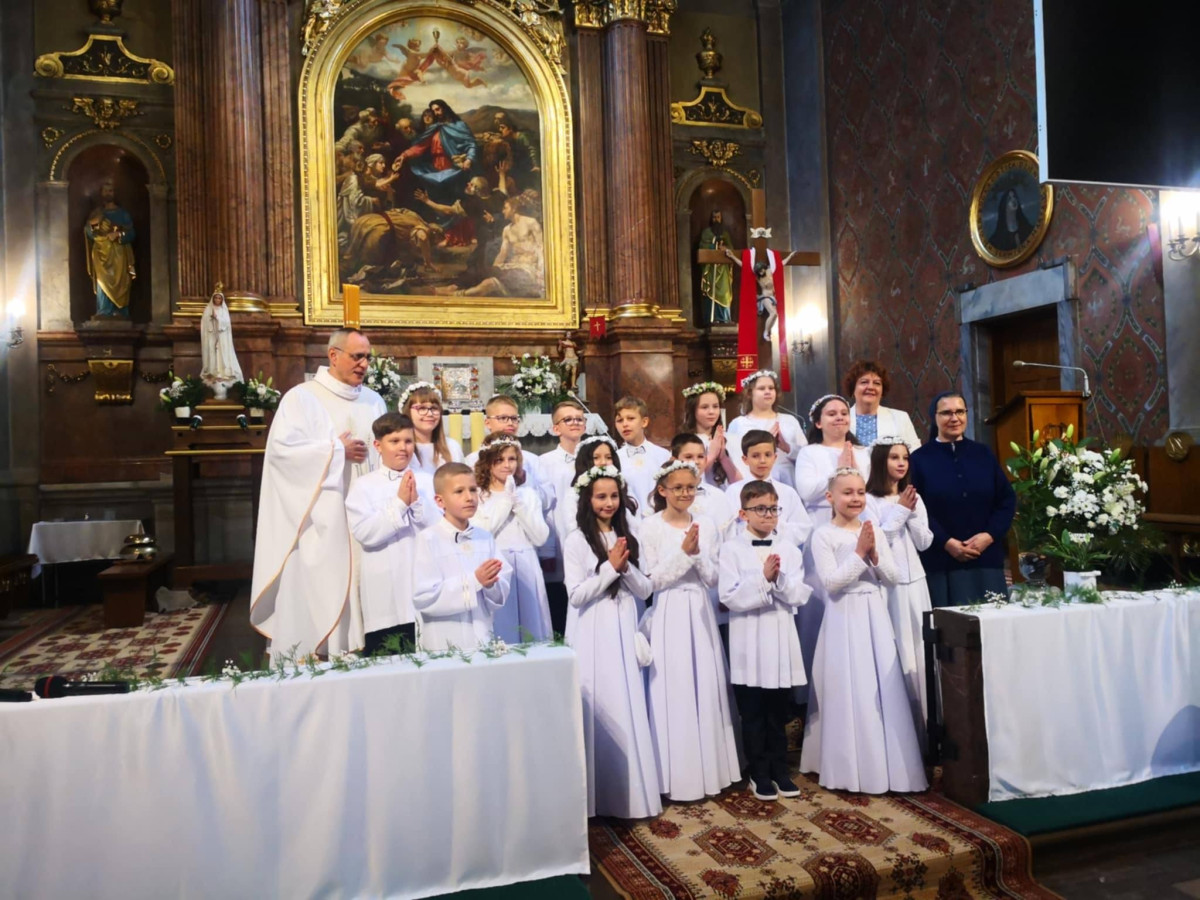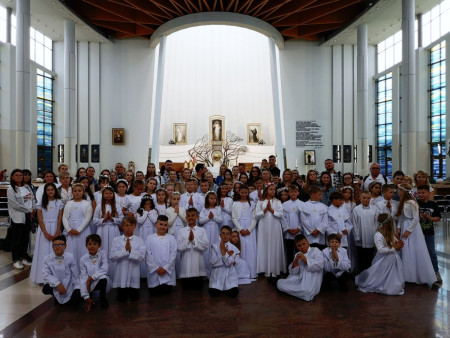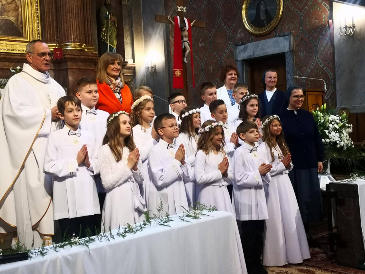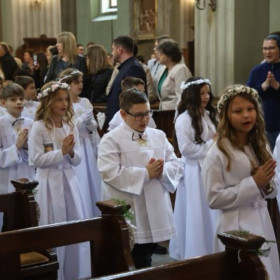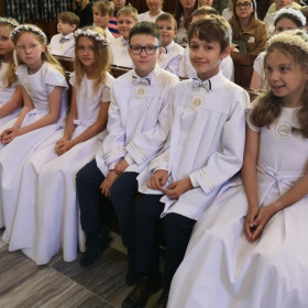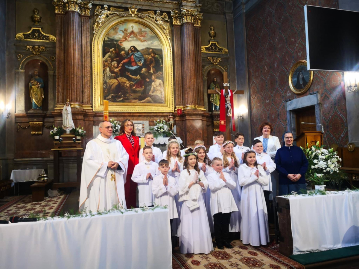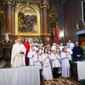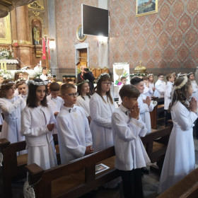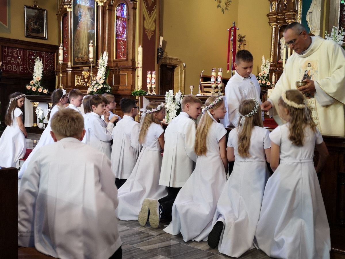 24 maja, uczniowie klas trzecich, w parafii pw. Świętego Wojciecha w Kielcach przystąpili do Pierwszej Komunii Świętej .