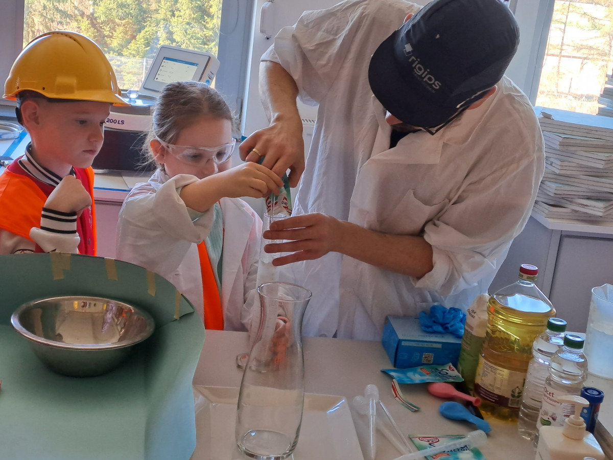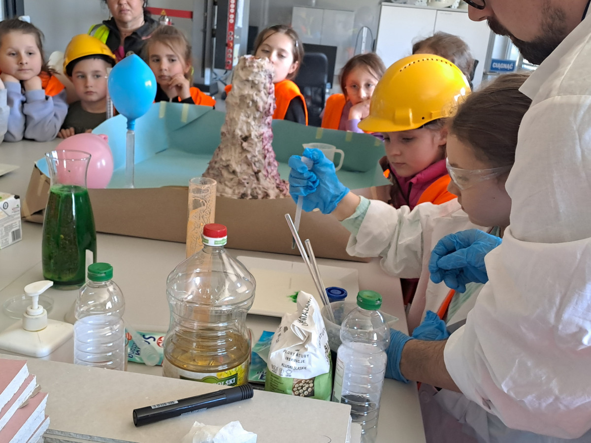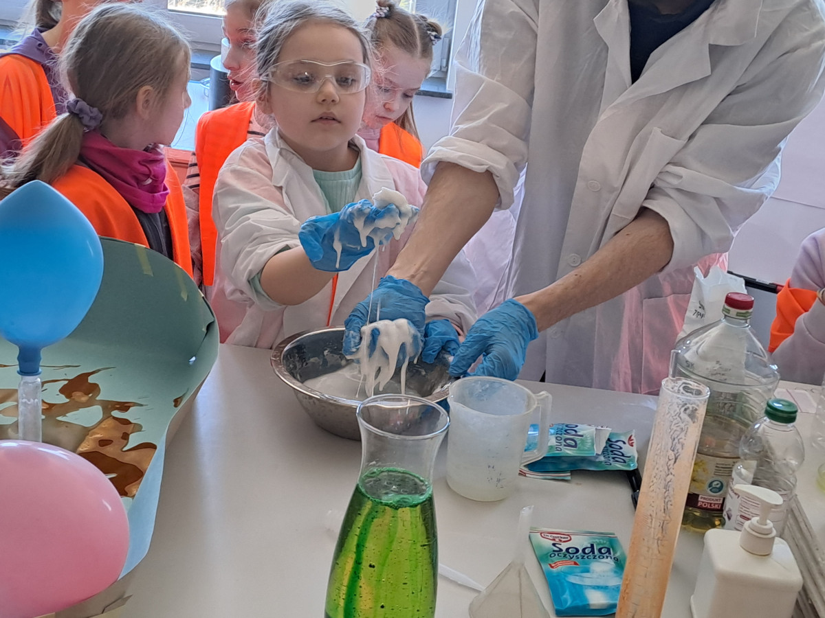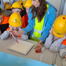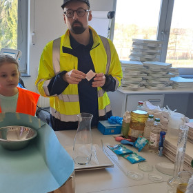 W dniu 4 kwietnia, klasa 2b odwiedziła Zakład Produkcyjny Rigips Saint Gobain w Szarbkowie. Przewodnikiem był pan Marcin Ogunowski, tata naszej uczennicy. Dzieci miały okazję zapoznać się z procesem powstawania płyt gipsowych. Ale najbardziej zachwyciły eksperymenty chemiczne przeprowadzone w laboratorium zakładu. Podczas jednego z nich obserwowaliśmy ,,wybuchający " wulkan. Uczniowie uczestniczyli także w zajęciach plastycznych, podczas których malowali gipsowe wielkanocne jajka. Na koniec każdy dostał prezent - opaskę odblaskową, pyszny sok oraz pluszowego misia. Dziękujemy!