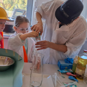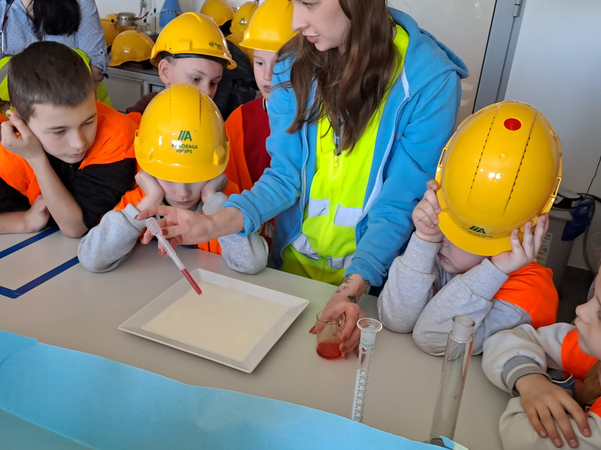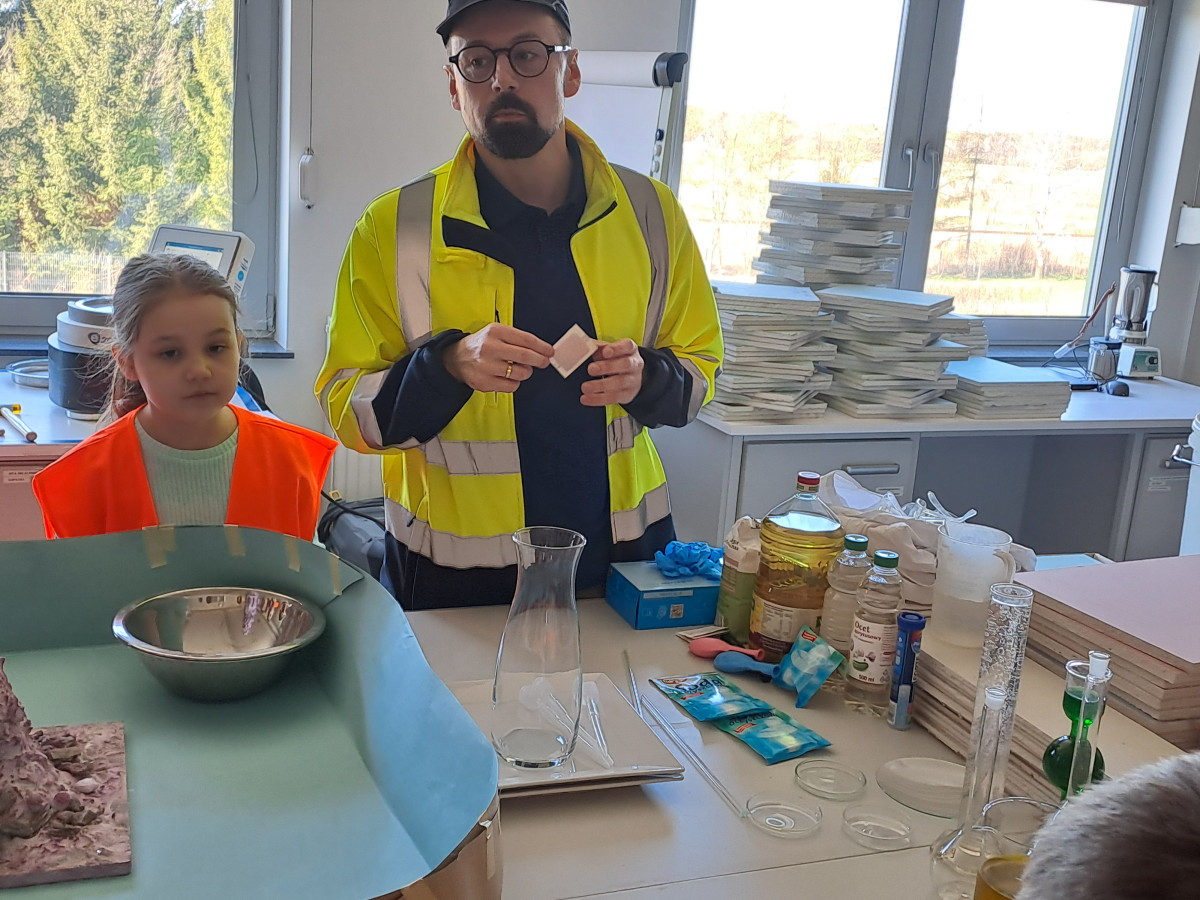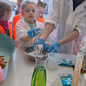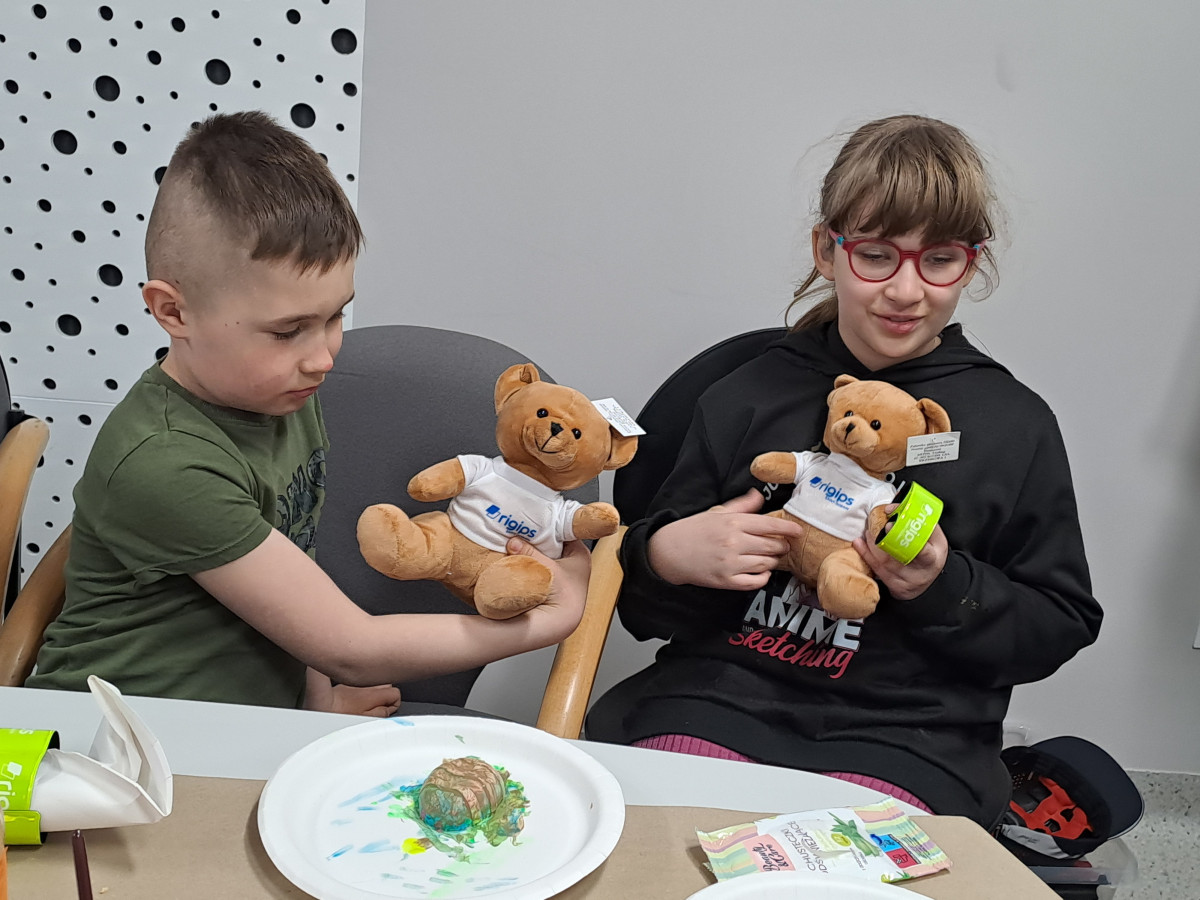 W dniu 4 kwietnia, klasa 2b odwiedziła Zakład Produkcyjny Rigips Saint Gobain w Szarbkowie. Przewodnikiem był pan Marcin Ogunowski, tata naszej uczennicy. Dzieci miały okazję zapoznać się z procesem powstawania płyt gipsowych. Ale najbardziej zachwyciły eksperymenty chemiczne przeprowadzone w laboratorium zakładu. Podczas jednego z nich obserwowaliśmy ,,wybuchający " wulkan. Uczniowie uczestniczyli także w zajęciach plastycznych, podczas których malowali gipsowe wielkanocne jajka. Na koniec każdy dostał prezent - opaskę odblaskową, pyszny sok oraz pluszowego misia. Dziękujemy!