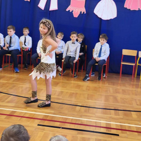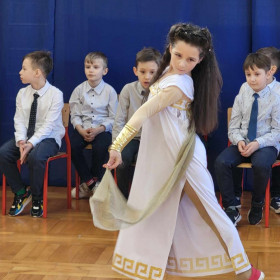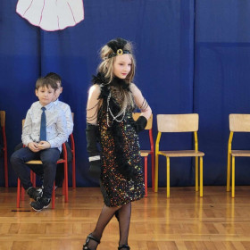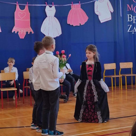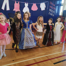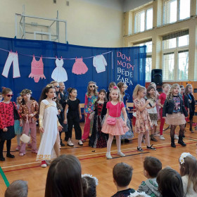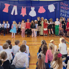 8 marca, podczas programu artystycznego dla Przedszkolaków z pobliskich Przedszkoli Samorządowych nr: 30, 33, 43, a także Niepublicznego Przedszkola Zgromadzenia Sióstr Miłosierdzia Św. Wincentego a' Paulo oraz naszych uczniów, świetliczaki z oddziału przedszkolnego i klas 1-3 zaprezentowały zmiany w modzie na przestrzeni wieków.