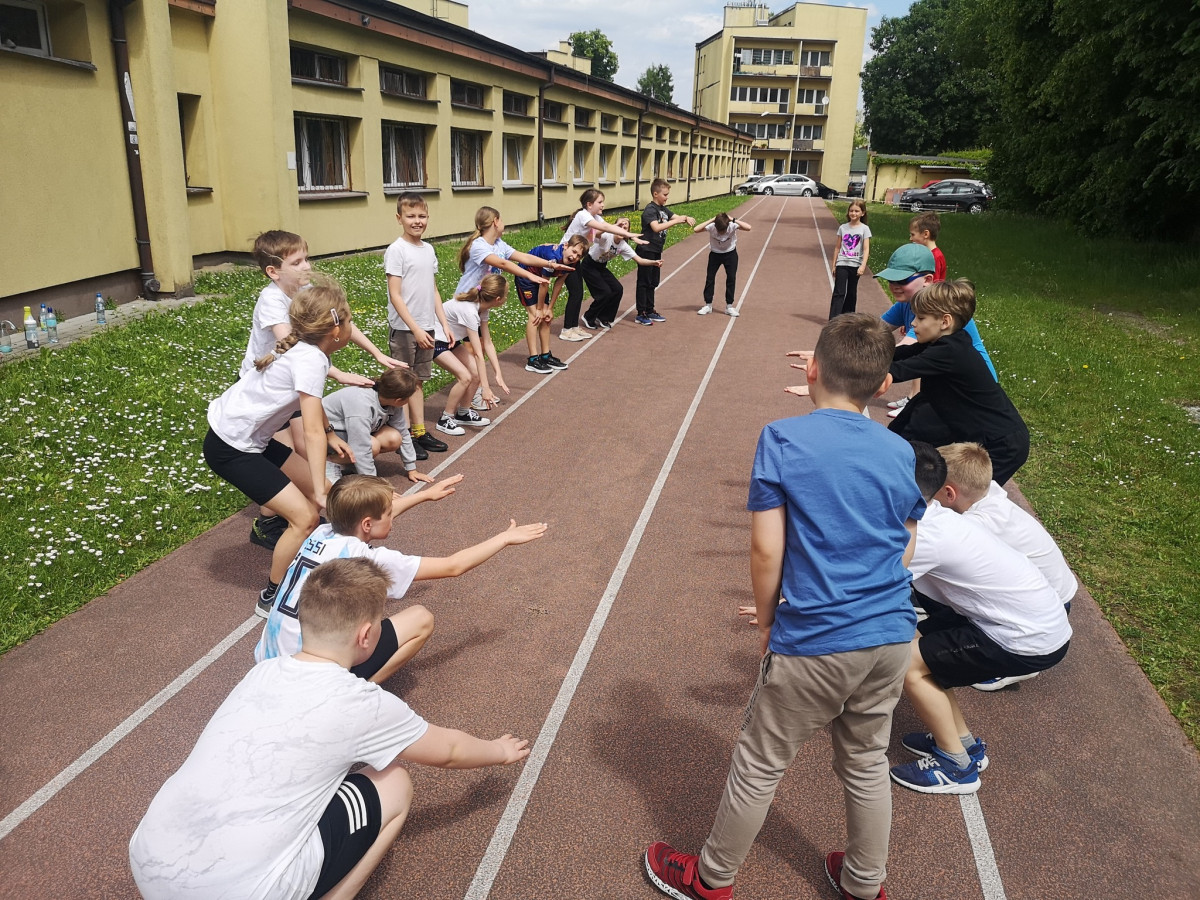 Ostatnie zadanie projektu związane było z podsumowaniem zajęć wychowania fizycznego. Dzieci doskonale już wiedzą, że przed każdą aktywnością fizyczną niezbędna jest rozgrzewka, a tym bardziej w przypadku sportowca, który trenuje, by zdobywać medale, nagrody, czy wyróżnienia. Uczniowie na własnym przykładzie ustalili, że należy się rozgrzać, ponieważ: zwiększa się elastyczność i wydajność mięśni, zmniejsza się ryzyko kontuzji, pobudza się układ krążenia i układ oddechowy oraz przygotowujemy ciało do wysiłku. Po tych ustaleniach, klasa rozpoczęła rozgrzewkę, aby przygotować swoje ciało do biegania w naturalnym środowisku. Po dobrze wykonanym treningu nie było mowy o kontuzji.
