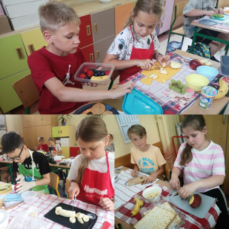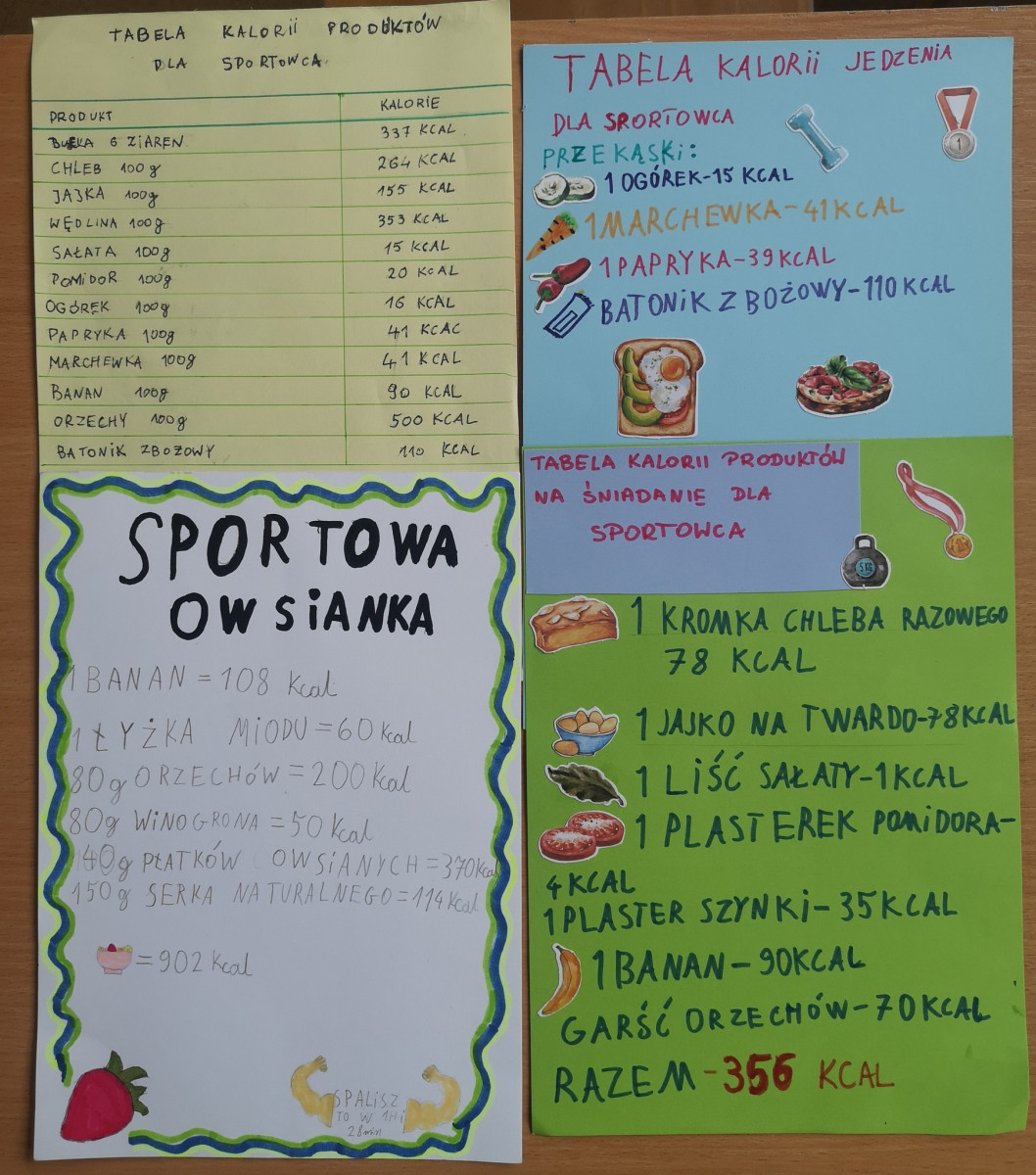 Zajęcia na temat kalorii i diety sportowca były atrakcyjne i edukacyjne, ponieważ na podstawie przygotowanego przepisu z danymi kalorycznymi uczniowie wykonali przepyszne i zdrowe przekąski dla sportowców. Uczniowie potrafili wyjaśnić, jak różne produkty mają wpływ na energię i zdrowie. Podkreślali wagę warzyw, owoców i innych zdrowych produktów, które doskonale wpływają na odpowiednią dietę dla aktywnych.