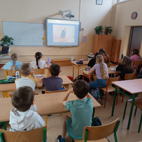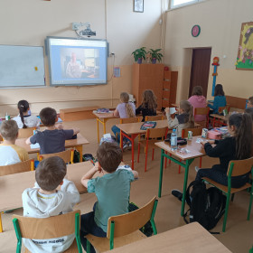 Ostatnimi zrealizowanymi przez klasę zadaniami były zajęcia z cyklu: "Ile kalorii jest w diecie sportowca?", "Jak bezpiecznie pracować przy komputerze?" oraz "Po co sportowiec się rozgrzewa?".