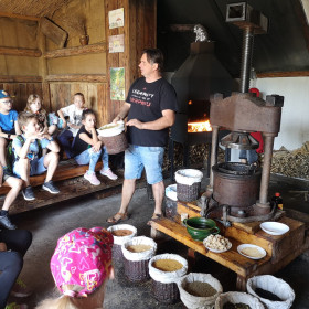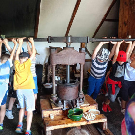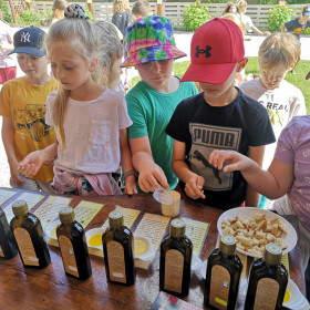 Olejarnia Zagłoby to rodzinna manufaktura roślinnych olejów spożywczych. Podczas wizyty w tym miejscu uczniowie wysłuchali opowieści gospodarza o tradycyjnym olejarstwie w Polsce i o roślinach oleistych. Poznali walory zdrowotne olejów oraz ich zastosowanie w kuchni. Gospodarz zaprezentował uczniom różne nasiona oleiste, które również mogli degustować. Dużo emocji wzbudził pokaz tłoczenia oleju, który odbywał się przy użyciu oryginalnej zabytkowej maszyny. Uczniowie mogli sami kręcić tłokiem maszyny, a chętnych do tej pracy nie brakowało.