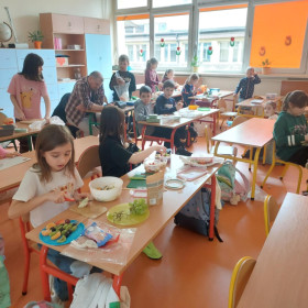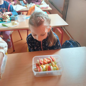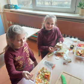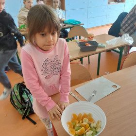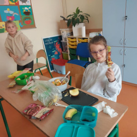 Opublikowano: 14.03.2025 W ostatnich dniach, uczniowie klasy 2 a zajmowali się tematyką zdrowia, zdrowego odżywiania. Poznawali piramidę żywności, domowe sposoby na leki. Zwieńczeniem zajęć było przygotowanie zdrowej, wiosennej przekąski. Było pysznie!
