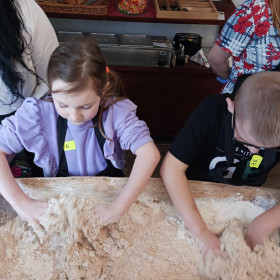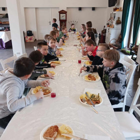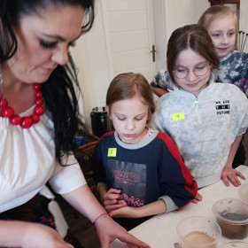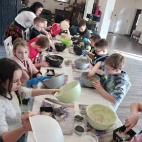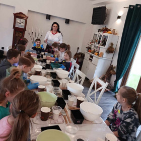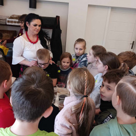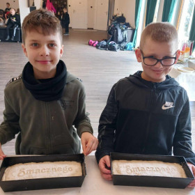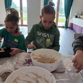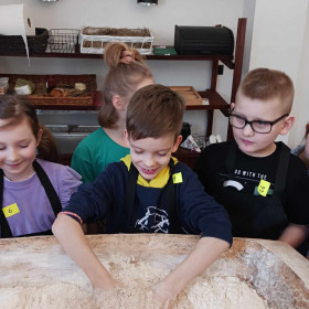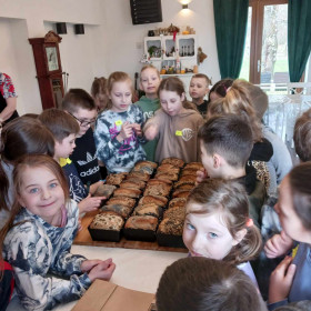 Klasa 3„b” z okazji Dnia Kobiet wybrała się na warsztaty pieczenia chleba do Agroturystyki „Głuchowskie Specjały” w Rakowie. Podczas zajęć gospodyni opowiedziała uczniom o kolejnych etapach powstawania chleba i o składnikach, jakich się używa do jego wypieku. Dzieci miały okazję spróbować różnych rodzajów chleba i wyrazić swoje opinie na temat jego smaku. Po degustacji przyszedł czas na własnoręczne wyrabianie ciasta. Na początku gospodynie nasypały dzieciom do misek dwa rodzaje mąki. Dzieci wskazywały różnice w wyglądzie i strukturze tego sypkiego składnika. Potem do miski włożono zakwas i dolano wody. Po czym zaczęło się ugniatanie ciasta. Uczniowie z dużym zaangażowaniem wcielili się w rolę piekarzy. Zrozumieli, że wyrabianie ciasta na chleb nie jest łatwą czynnością. Kiedy prowadzący uznali, że ciasto jest już odpowiednie do wypieku, dzieci włożyły je do foremek. Każdy swój chleb ozdabiał wybranymi dodatkami: słonecznikiem, sezamem, makiem lub pestkami dyni. Wszyscy uczniowie byli zadowoleni z wykonanej pracy. W trakcie oczekiwania na gorący chlebek uczniowie relaksowali się na świeżym powietrzu. Piękne, rumiane i chrupiące chlebki uczniowie z dumą zabrali do domu. To była przyjemna, pouczająca i satysfakcjonująca przygoda. Oto galeria zdjęć: