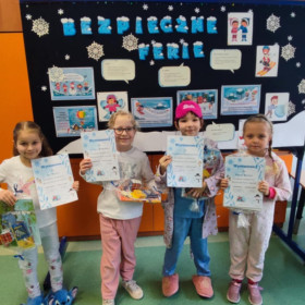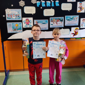 Konkurs "Bezpieczne ferie zimowe" został rozstrzygnięty. Wszyscy uczniowie wykazali się niezwykłą pomysłowością. Oto wyniki: I miejsce: Hanna Krakowiak (1a) II miejsce: Jakub Hrouda (1b) III miejsce: Wojciech Matusiak(1c) Wyróżnienia: Hanna Baracz (1a), Natalia Krzyżanowska (1a), Iga Michta (1a), Adam Majecki (1b), Liliana Romaniec (1b). Gratulujemy zwycięzcom i dziękujemy wszystkim uczniom za udział w konkursie.