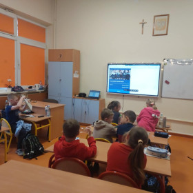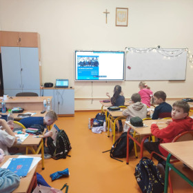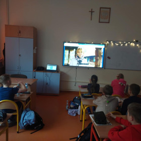 18 grudnia na lekcjach muzyki, uczniowie klasy 2 a starali się znaleźć odpowiedź na pytanie - "Czy Poleczka to Polski Taniec?" Lekcja rozpoczęła się od od prezentacji filmu, w którym historyczka, dr hab. Barbara Krysztopa-Czupryńska opowiadała dzieciom, jak wyglądała rzeczywistość społeczna Polski z minionych stuleci. Następnie uczniowie odpowiadali na muzyczne zagadki, by potem przejść do bardzo ciekawych informacji o Polskich Tańcach Narodowych. Obejrzeliśmy filmy prezentujące poloneza, mazura, krakowiaka, kujawiaka czy oberka. Podczas zajęć ruchowych, uczniowie z zapałem ćwiczyli podstawowy krok krakowiaka. Te zajęcia były bardzo ciekawe!