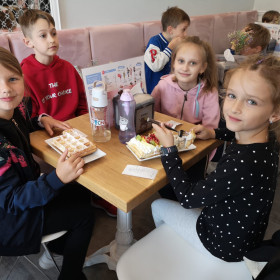 W drodze powrotnej uczniowie poszli na boskie gofry, rurki i lody.