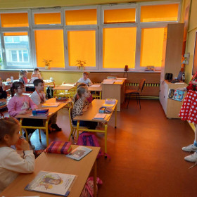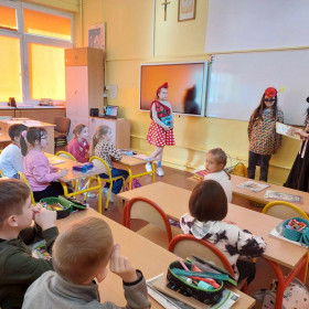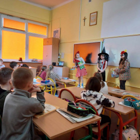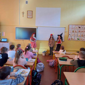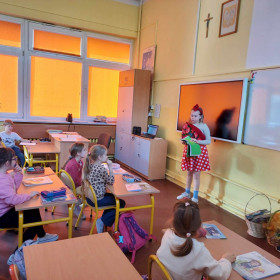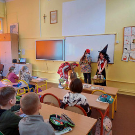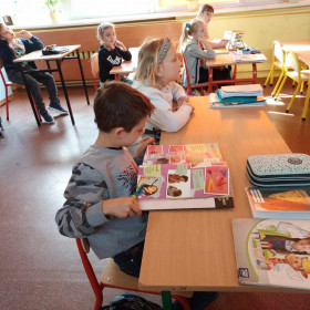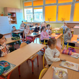 Niecodzienną wizytę mieli w ostatnich dniach uczniowie klasy 1 a. Odwiedziły ich koleżanki z klasy 4 c, wraz z panią Małgorzatą Golą, bibliotekarką z naszej szkoły. Podczas specjalnych zajęć starsze koleżanki przedstawiły pierwszakom ciekawe książki, które znajdują się w zbiorach Biblioteki szkolnej. Pani Małgorzata Gola przypomniała zasady wypożyczania książek. Pierwszaki z kolei podzieliły się swoimi zainteresowaniami czytelniczymi. Dzieci wzięły także udział w interesującym quizie czytelniczym przygotowanym przez starsze koleżanki. Było bardzo ciekawie!