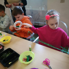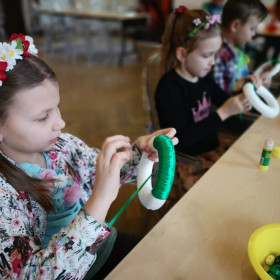 Uczniowie poznali najważniejsze zwyczaje związane ze Świętami Wielkanocnymi oraz dowiedzieli się, jak je obchodzono w dawnych czasach i które tradycje przetrwały do dziś. Na koniec każdy wykonał wielkanocny stroik, który będzie doskonałą ozdobą świątecznego stołu.