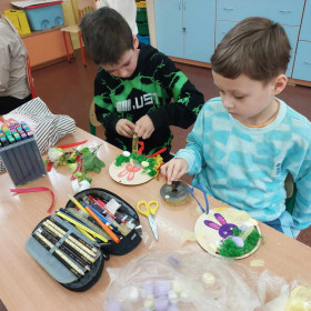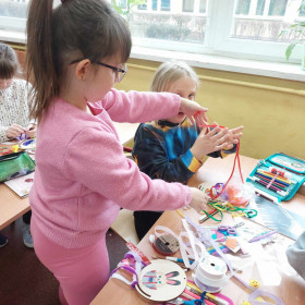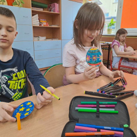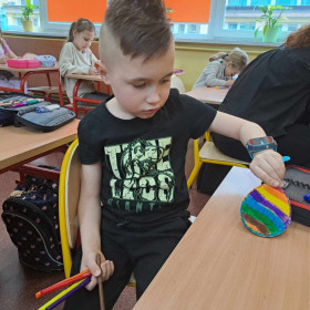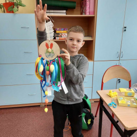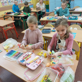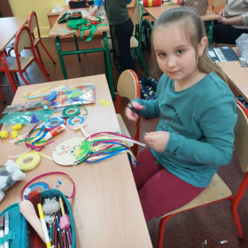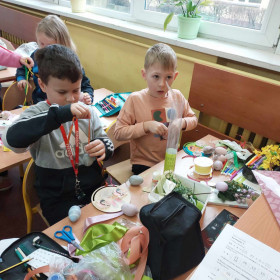 Kolorowe tasiemki, żółte kurczaczki, wzorzyste pisanki i inne kolorowe dekoracje posłużyły uczniom klasy 1 a i 1 b do wykonanie wielobarwnych stroików Wielkanocnych. Dzieci z dużym zapałem zabrały się do przygotowania pięknych świątecznych dekoracji. Już wkrótce Wielkanoc!
