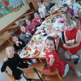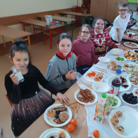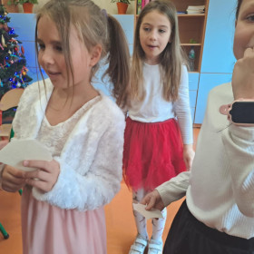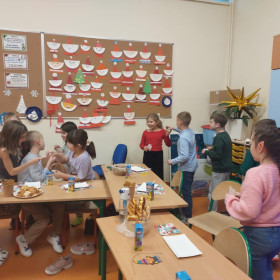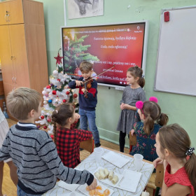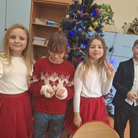 W ostatnich przed Świętami Bożego Narodzenia dniach nauki uczniowie klas 0-3 i wychowawcy spotkali się na tradycyjnym "Opłatku". Dzieci miały okazję integrować się przy wesołej, świątecznej muzyce, kolędować i tworzyć dekoracje świąteczne. A oto muzyczne życzenia od najmłodszych. Wesołych Świąt!