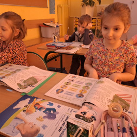 W klasie 1 b został omówiony wiersz Natalii Usenko "Potwór ekologiczny". Wiersz został głośno odczytany przez nauczyciela, następnie została przeprowadzona dyskusja na temat potrzeby segregowania śmieci. Każdy mógł zabrać głos i przedstawić swoje argumenty. Następnie dzieci wykonały "Pożeracza Baterii". Zajęcia zrealizowano w ramach Międzynarodowego Projektu - Z Kulturą mi do twarzy.