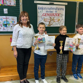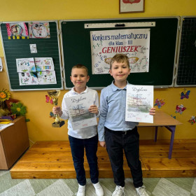 Dnia 24 kwietnia w Szkole Podstawowej nr 20 w Kielcach odbył się Międzyszkolny Konkurs Matematyczny „Geniuszek”. Jak co roku na konkurs zgłosili się trzecioklasiści z kieleckich „podstawówek”. Uczniowie rozwiązywali test składający się z 30 zadań, głównie logicznych. Poziom był bardzo wysoki. Mamy zaszczyt poinformować, że uczeń Nataniel Dorowski z klasy 3„b” został Matematycznym „Geniuszem” XX edycji Konkursu Matematycznego. Słowa uznania należą się również dla Adriana Sokoła z klasy 3„b” , gdyż dzielnie walczył o uzyskanie wysokiej punktacji osiągając IV miejsce w konkursie. Uczniowie udowodnili, że w Szkole Podstawowej nr 15 są dzieci uzdolnione matematycznie.