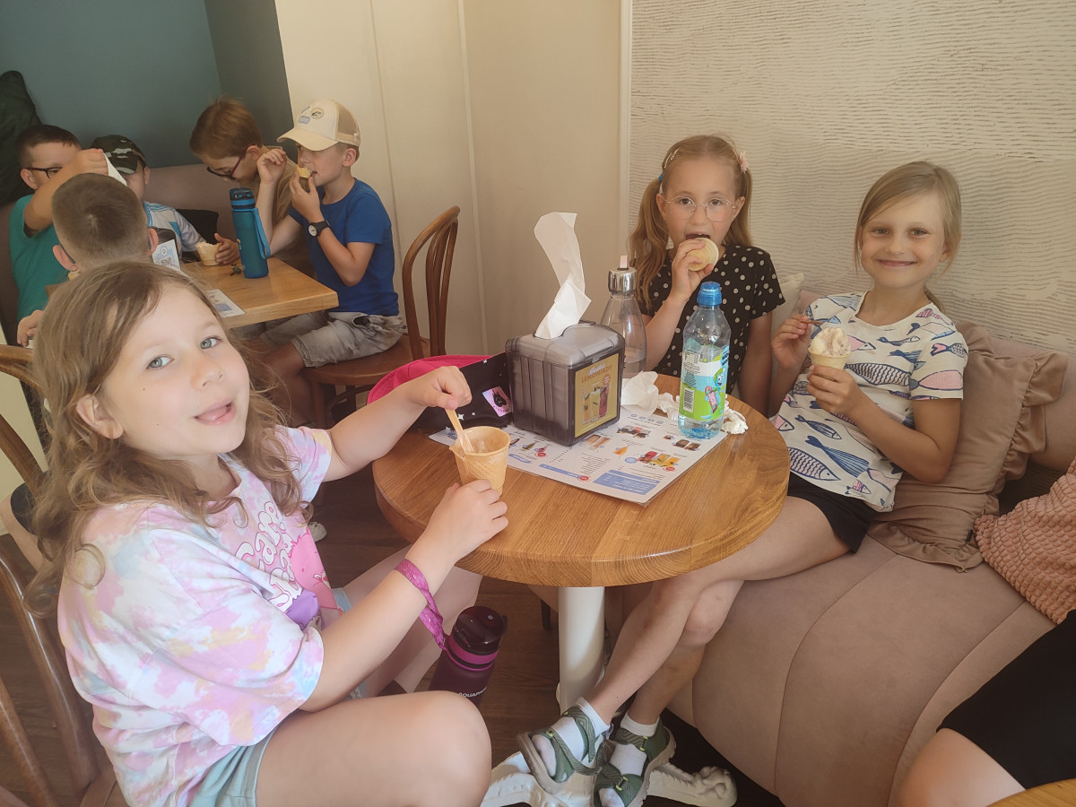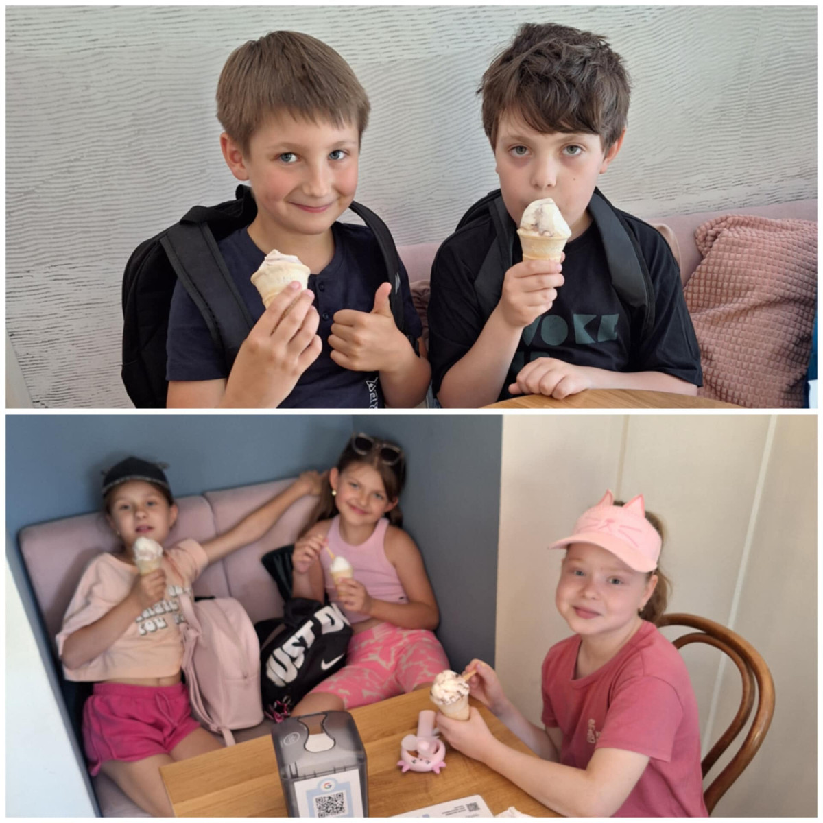Po porannych spotkaniach z wychowawczyniami klasy wyruszyły na spacery, pikniki i lody. Pogoda dopisała – świeciło słońce, a lekki wietrzyk chłodził powietrze. Dzieci rozmawiały, żartowały i cieszyły się wspólnym czasem, czując już wakacyjną atmosferę.