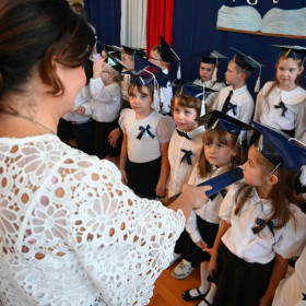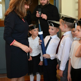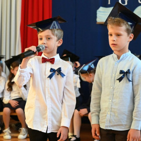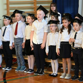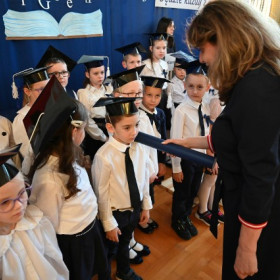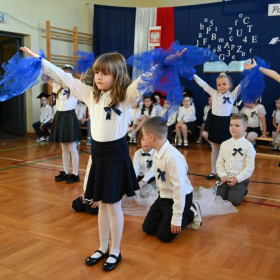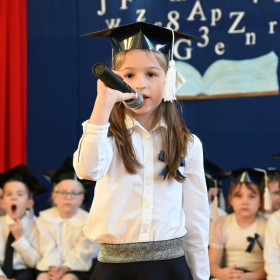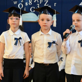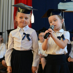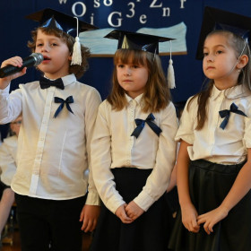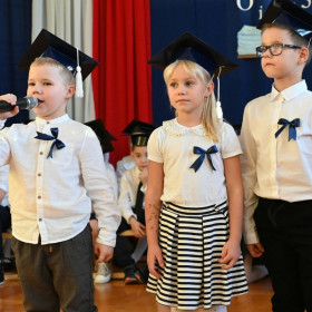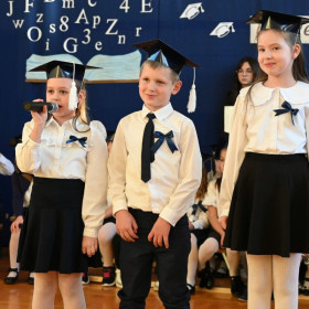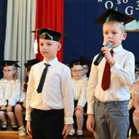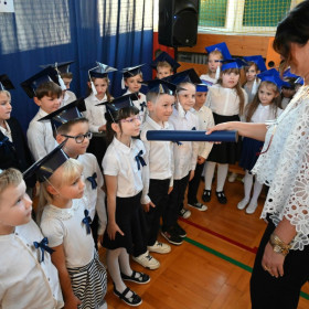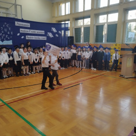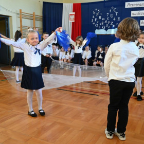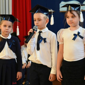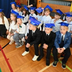 24 października 2024 r. miała miejsce niezwykle ważna dla życia szkoły, uroczystość ślubowania i pasowania uczniów klasy pierwszej. To emocjonujące wydarzenie jest piękną, szkolną tradycją kultywowaną od wielu lat. Pierwszoklasiści przygotowywali się do tego dnia wytrwale i starannie pod kierunkiem swoich wychowawczyń oraz opiekunów SU. Pierwszaki w obecności rodziców, dyrekcji szkoły, nauczycieli wykazali się wieloma umiejętnościami. Zaprezentowali wiedzę o właściwym zachowaniu się w szkole, o bezpieczeństwie w ruchu drogowym, dali się poznać jako młodzi patrioci, kochający swoją Ojczyznę. Zadeklarowali chęć do nauki oraz pokazali umiejętność pracy w grupie demonstrując piękny układ taneczny. Rodzice, dziadkowie i nauczyciele z dumą obserwowali, jak najmłodsi uczniowie stawiają pierwsze kroki na ścieżce edukacji. Akt pasowania uczniów na pierwszoklasistów dokonywany przez dyrektor szkoły Elżbietę Rasałę oraz dyrektor Annę Minkinę był momentem, który na długo pozostanie w pamięci dzieci oraz ich rodziców.