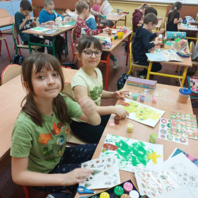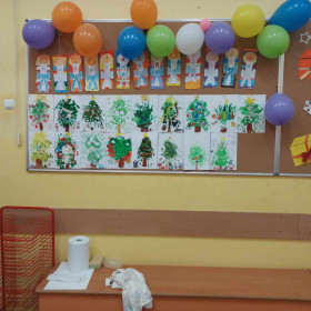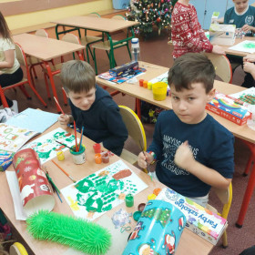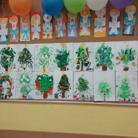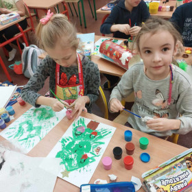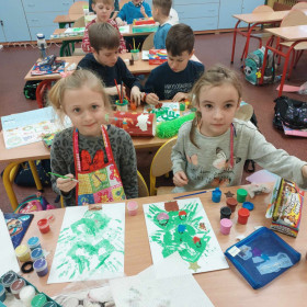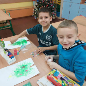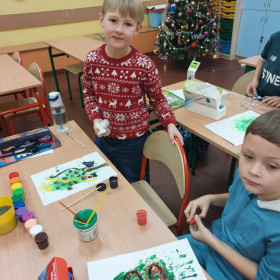 Uczniowie klasy I a, bardzo lubią zajęcia plastyczno-techniczne. Nadchodzące święta Bożego Narodzenia dają nam możliwość tworzenia pięknych, niebanalnych dekoracji świątecznych. Dzieci tym razem wykonały piękne choinki techniką malarską, wykorzystując farby. Dzieci odciskały dłonie na kartkach tworząc niepowtarzalne drzewka świąteczne. Ozdoby wykonywały wyklejając lub malując palcami. Wyszło przepięknie.