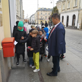 W ramach obchodów 465-lecia Poczty Polskiej uczniowie klasy 2a przygotowali pocztówki do bliskich, zaadresowali koperty oraz wykonali skrzynkę z życzeniami dla pracowników poczty z okazji wczorajszego święta. To wszystko było wstępem do wizyty w Urzędzie Pocztowym