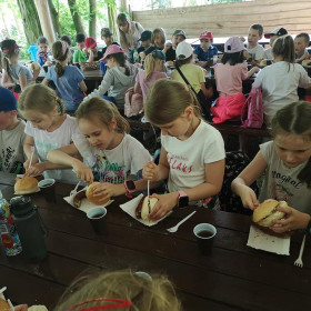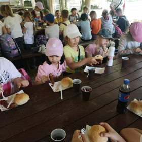 Po zwiedzeniu ZOO dzieci udały się na ogromny plac zabaw, gdzie miały do dyspozycji trampoliny, zjeżdżalnie, park linowy itp. Następnie dzieci zjadły pyszną kiełbaskę z grilla i zakupiły pamiątki.