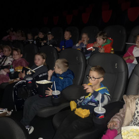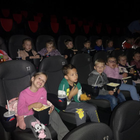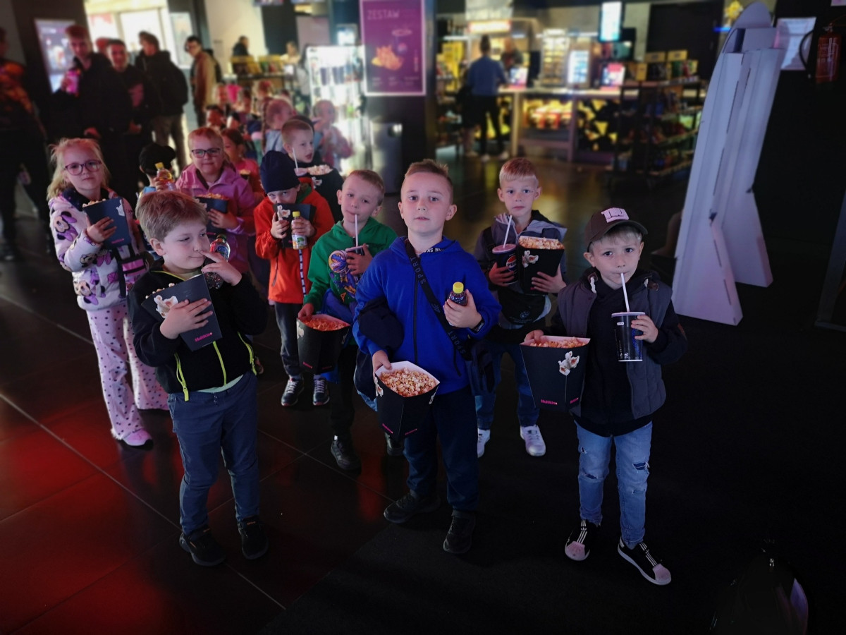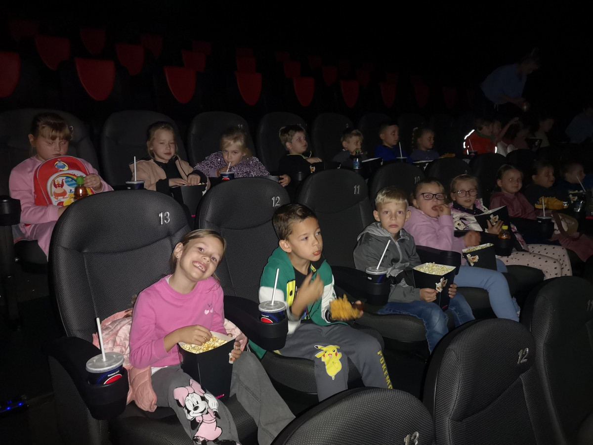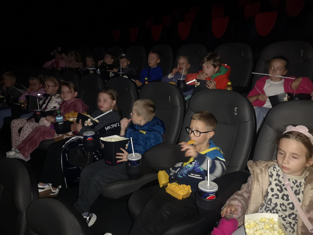 Uczniowie z radością zasiedli w kinowych fotelach, ponieważ byli gotowi na niezapomnianą przygodę z ulubionymi bohaterami.