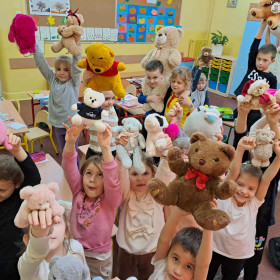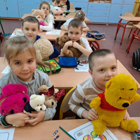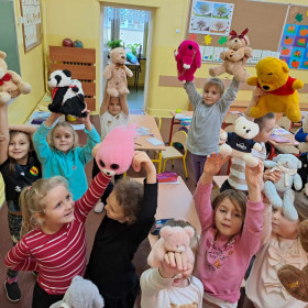 Dlatego też, uczniowie klasy 1 a,1b i 1c w przededniu tego święta postanowili uczcić ten ważny dla nich dzień. Było mnóstwo zabawy i radości. Dzieci poznały historię pluszowych przytulanek, związaną z prezydentem Stanów Zjednoczonych Theodorem “Teddy” Rooseveltem, a także historię powstania najsłynniejszej opowieści A. A. Milne o Kubusiu Puchatku. Wykonały kolorowe place plastyczne odzwierciedlające ukochane pluszaki, bawiły się w zabawę „Stary niedźwiedź…” oraz rozwiązywały rebusy i zagadki z bohaterem bajki ze Stumilowego Lasu. Podczas zabaw ruchowych na lekcjach W-F dzieci wykonywały ćwiczenia imitujące misiowe ruchy. W tym dniu naszym uczniom towarzyszyły ulubione zabawki.