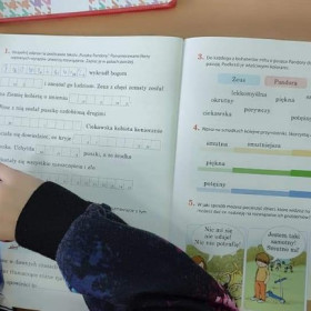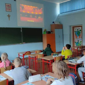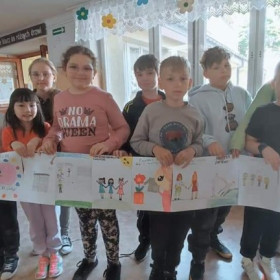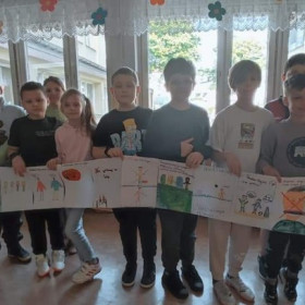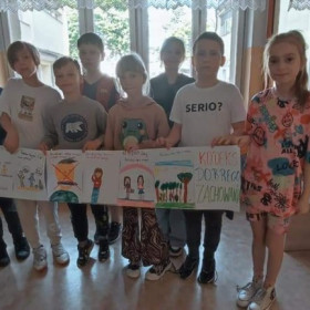 Realizując zadanie 1 "Kodeks dobrego zachowania" z modułu III "Kocham, lubię, szanuję" uczniowie wykonali obrazkowy kodeks, który swoim wyglądem przypominał długi pociąg. Z modułu IV "Kultury świata" uczniowie zrealizowali zadanie 8 "Mityczne opowieści". W czasie jego realizacji poznali takie pojęcia jak: mit i mitologia oraz wysłuchali mitu "Puszka Pandory".