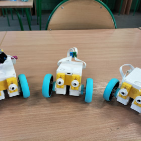Zajęcia z robotyki w starszych klasach są coraz ciekawsze, uczniowie już nie tylko budują wg. dostępnych instrukcji, ale sami tworzą swoje projekty i je programują. Nowe możliwości dał im zaawansowany zestaw klocków LEGO Prime. Uczniowie stworzyli z niego bardzo ciekawe pojazdy i urządzali nimi prawdziwe wyścigi!