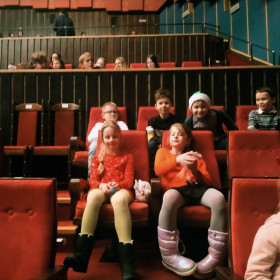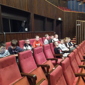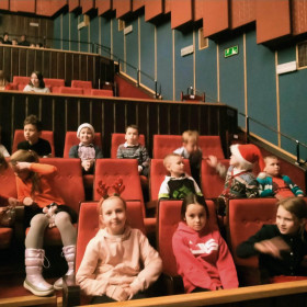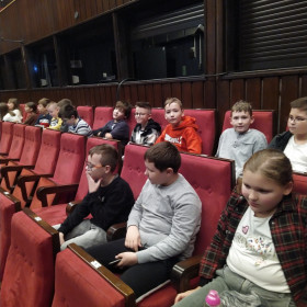 21.12.2022 r. uczniowie klas 1a, 2b i 4b udali się do Kieleckiego Centrum Kultury, gdzie obejrzeli muzyczny spektakl pt. „Frania Recykling, Cztery Żywioły i Ekodancing”.
