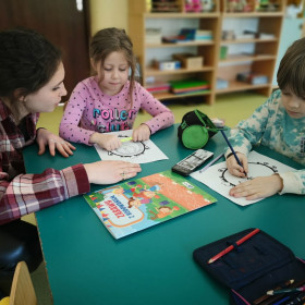 Nasi uczniowie przygotowali niespodziankę na powitanie wolontariuszek, które od razu zdobyły ich serca, swoim uśmiechem i zaangażowaniem. Dziewczyny zaangażowały się w pracę świetlicy szkolnej, dołączyły do wielu zajęć poza lekcyjnych m.in. języka angielskiego i robotyki, koła szachowego, zajęć przyrodniczych, plastycznych, muzycznych. Z nadejściem wiosny wraz z dziećmi ze świetlicy rozpoczną pracę w szkolnym ogródku. Same oczywiście chętnie uczą włoskiego i hiszpańskiego. Mamy nadzieję, że praca w naszej szkole dostarczy im niezapomnianych wrażeń a zdobyte doświadczenie pomoże osiągnąć wymarzone cele.