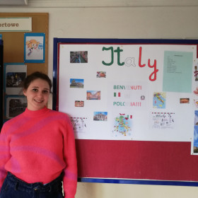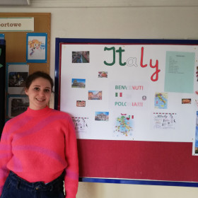 We wtorek powitaliśmy oficjalnie wolontariuszki z projektu Europejskiego Korpusu Solidarności, które rozpoczęły 10 miesięczną prace w naszej szkole. Pierwsza przyjechała do nas Francesca Mattiello ze słonecznych Włoch. Francesca ma 19 lat, ukończyła szkołę językową w swoim rodzinnym mieście Vinceza, w północnej części Włoch. Chcąc podróżować i rozwijać swoje umiejętności językowe a także zdobyć doświadczenie w pracy z dziećmi postanowiła skorzystać z możliwości przyjazdu do Polski i pracy w naszej szkole. Ponieważ nie wie jak pokierować dalej swoim życiem ma nadzieję, że zdobyte doświadczenie pomoże jej w tym.
