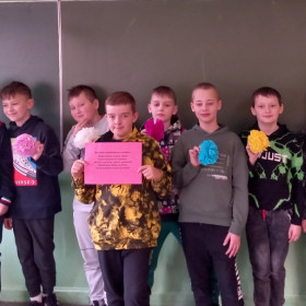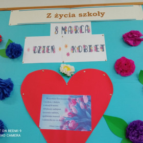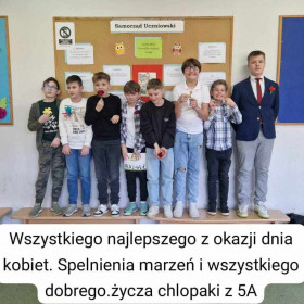 8 marca obchodziliśmy Dzień Kobiet. Z tej okazji SU zaprosił wszystkich; do wspólnej zabawy-uczniowie klas 4-8 mogli poznać dokonania wielu kobiet, które m.in. przyczyniły się do rozwoju nauki (informacje ukryte były pod kodami QR umieszczonymi na kolorowych kwiatach). W naszej placówce było tego dnia bardzo kolorowo-aby podkreślić miły charakter tego święta, prawie wszyscy mieli na sobie ubrania w kwiaty. Z okazji Dnia Kobiet chłopcy zrobili sobie zdjęcia z życzeniami dla wszystkich Pań.