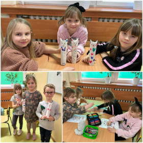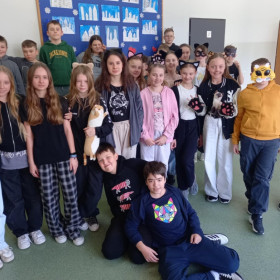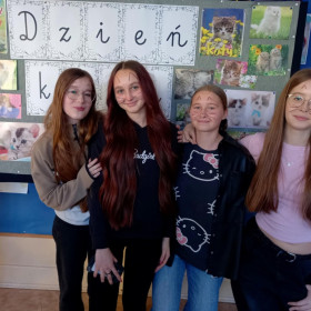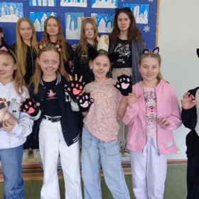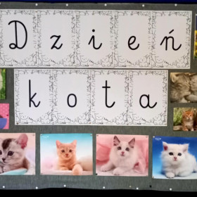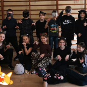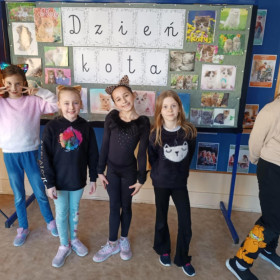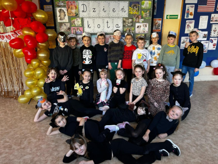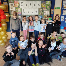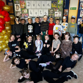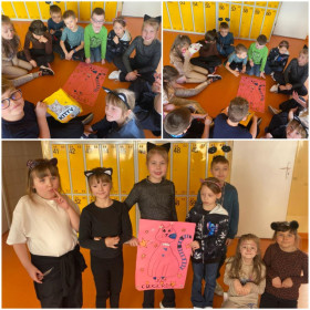 Nasi uczniowie wystąpili w "kocich" przebraniach. Była to nie tylko okazja do zabawy, ale również miły czas poświęcony edukacji dzieci w zakresie opieki nad zwierzętami. Na lekcjach najmłodsi uczniowie wykonywali prace plastyczne z kotami, rozwiązywali zagadki, a także grali w gry o kociej tematyce. Zgłębiali również wiedzę na temat ras kotów. Tego dnia w naszej szkole panował "po prostu koci świat!".